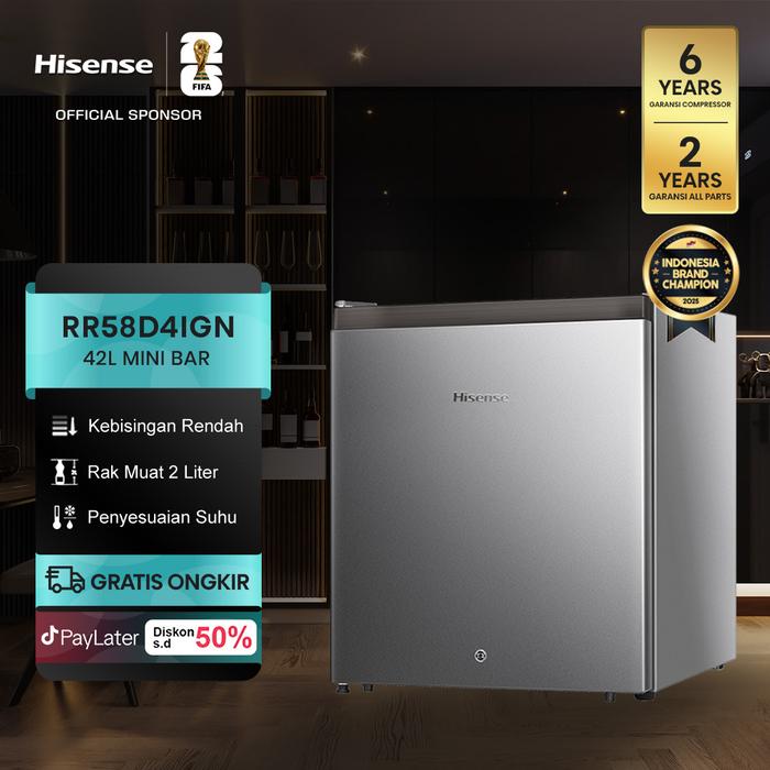 HISENSE-RR58D4IGN-Kulkas Mini-Kapasitas 42L Mini Bar-Tingkat Kebisingan Rendah- 2Liter Rak Muat