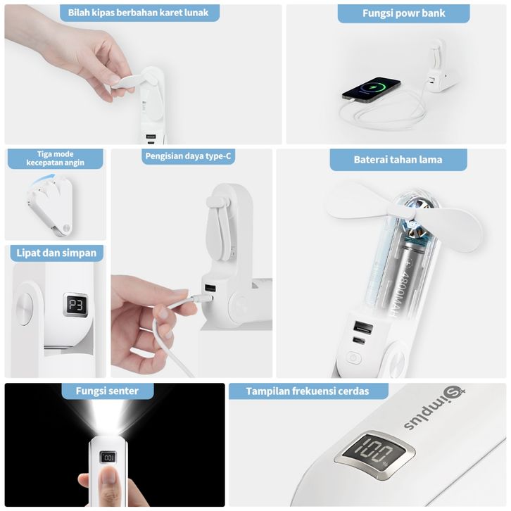 SimplusPink Kipas 3in1 Mini Genggam Lipat USB Portabel dengan Dua pilihan Kecepatan Angin