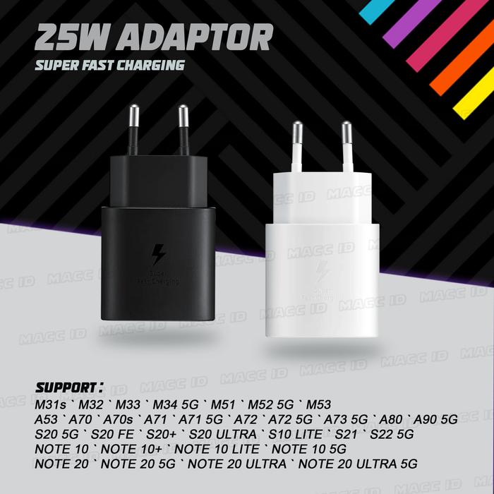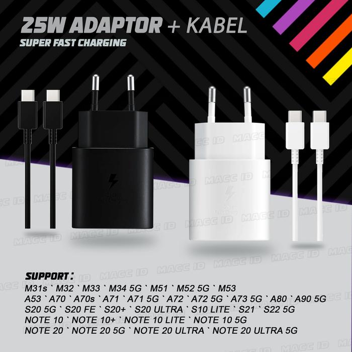 CHARGER SAMSUNG TYPE C TO TYPE C S20 45W SUPER FAST CHARGING ORIGINAL - 25W ADP+KABEL, HITAM - 1 BULAN