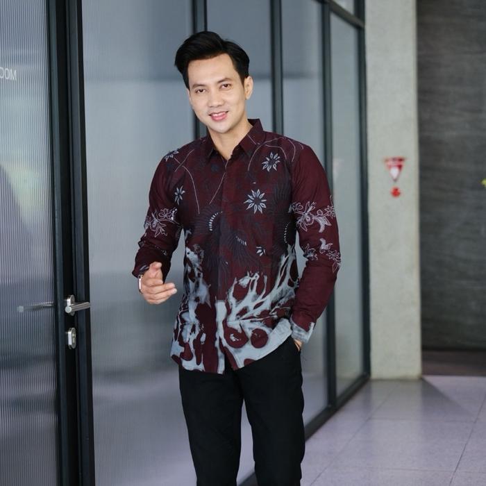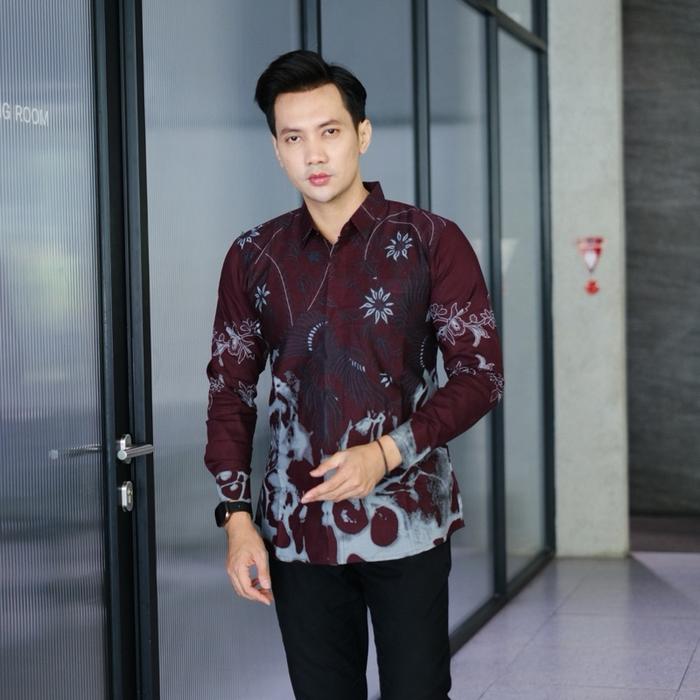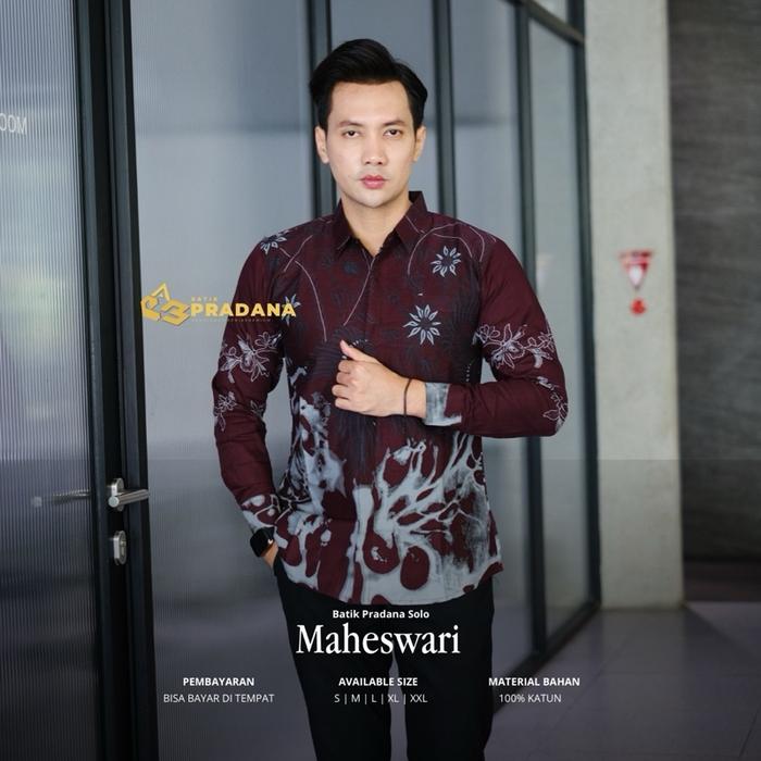 PRADANA BATIK SOLO KEMEJA BATIK PRIA SLIMFIT PREMIUM WARNA BURGUNDY MOTIF MAHESWARI 100 PERSEN KATUN HALUS LAPIS FURING BAJU HEM PRIA KONDANGAN SIZE S M L XL XXL - S