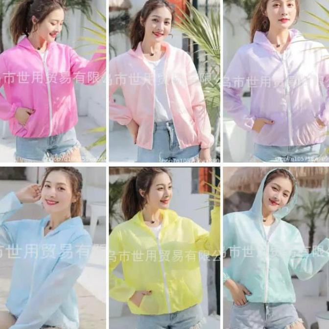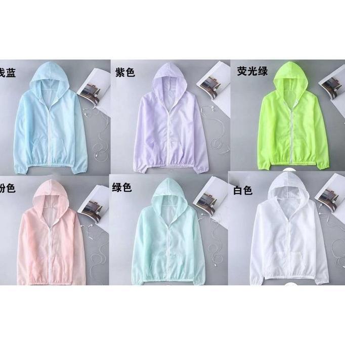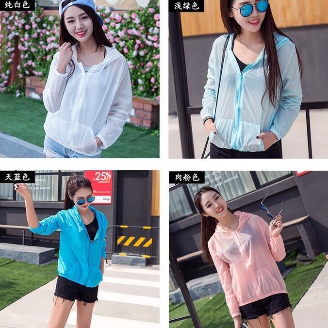 JAKET SPORT PARASUT WANITA ANTI UV KOREAN STYLE TIPIS DAN RINGAN MURAH - PUTIH