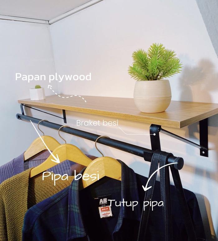 RAK DINDING BESI LEMARI BAJU 80X20CM AMBALAN HAMBALAN GANTUNG SERBAGUNA GANTUNGAN KAYU RAK UNTUK HELM DINDING RAK JAS HUJAN - HITAM, LENGKAP 80X20 BESI HITAM