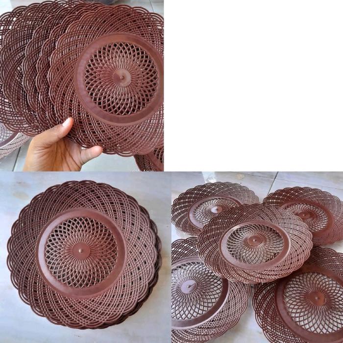 PIRING PLASTIK ROTAN COKLAT 1 LUSIN TEBAL PIRING ROTAN PLASTIK COKLAT MJP 12 PCS KITCHENWARE
