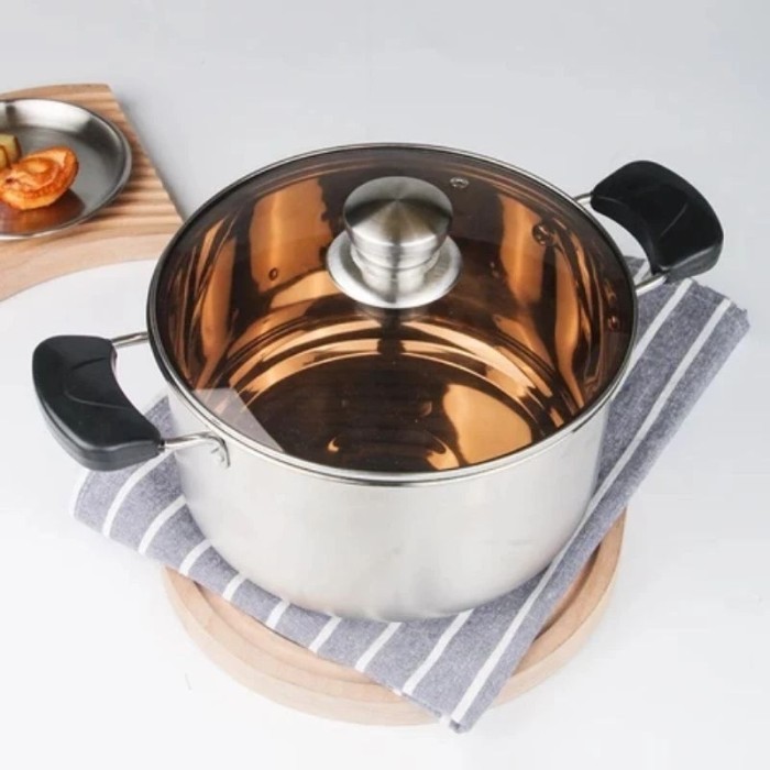KOREAN SOUP POT PANCI SOP STAINLESS VIENNA UKURAN 22, 24, 26, 28 CM DENGAN TUTUP KACA