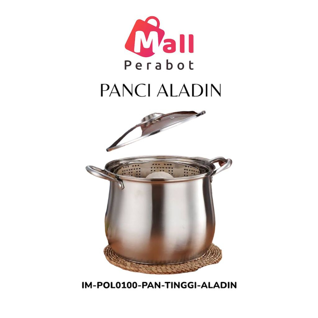Mall Perabot NK | Panci Stokpot Aladin Stainless Steel Tebal Standar | Panci Tinggi 22 cm | Pot Set Alladin | Dandang Stockpot | serbaguna
