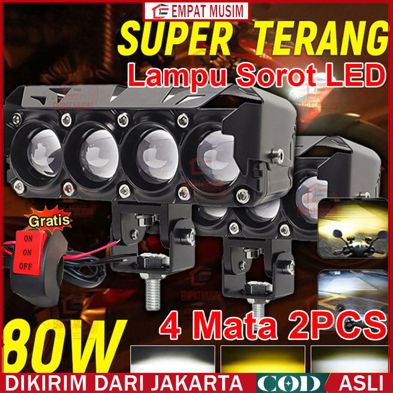 【FREE SAKLAR】12V / 24V Lampu Sorot Tembak Devil Eye Super Terang Mobil Lampu LED Tembak Sorot D3 SQL Lampu Tembak Sorot LED Laser 3 Mata 4