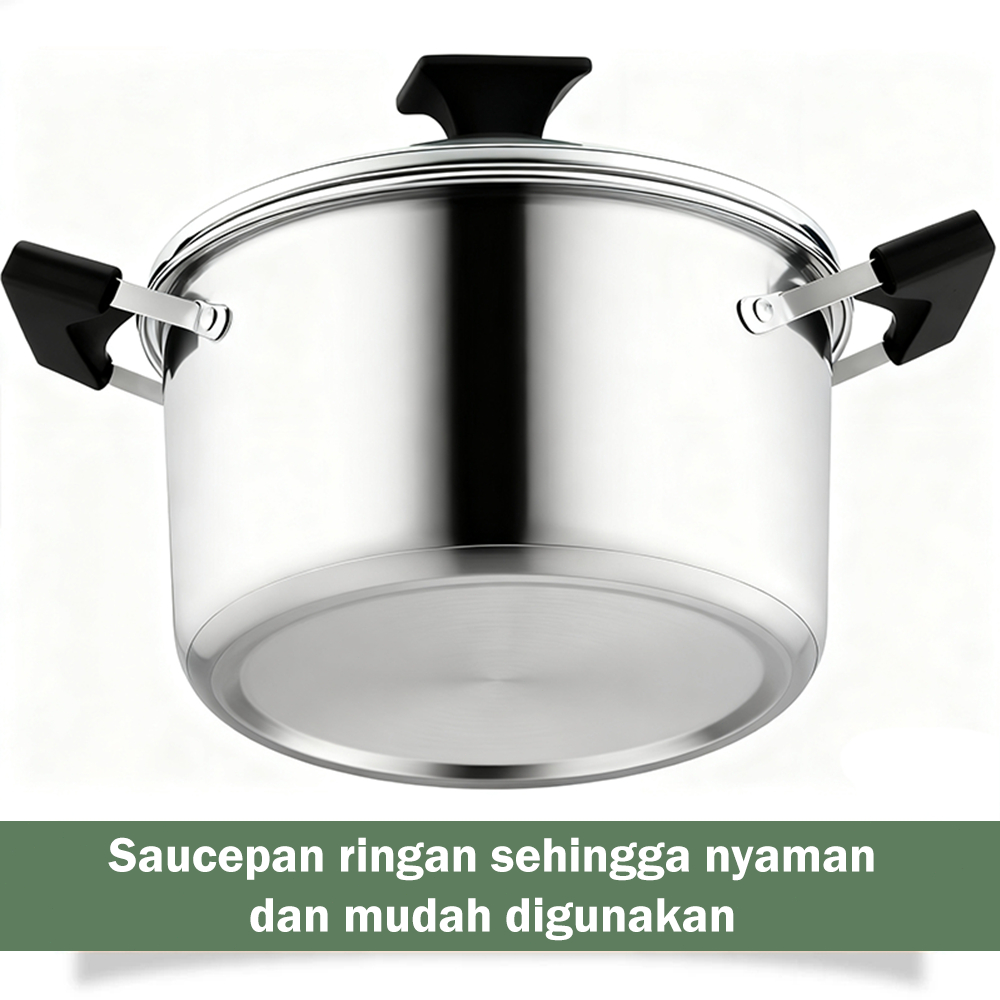 Soup Pot 22cm 24cm 26cm Panci Sup Stainless Steel Tutup Kaca Premium Quality Sauce Anti Karat Serbaguna