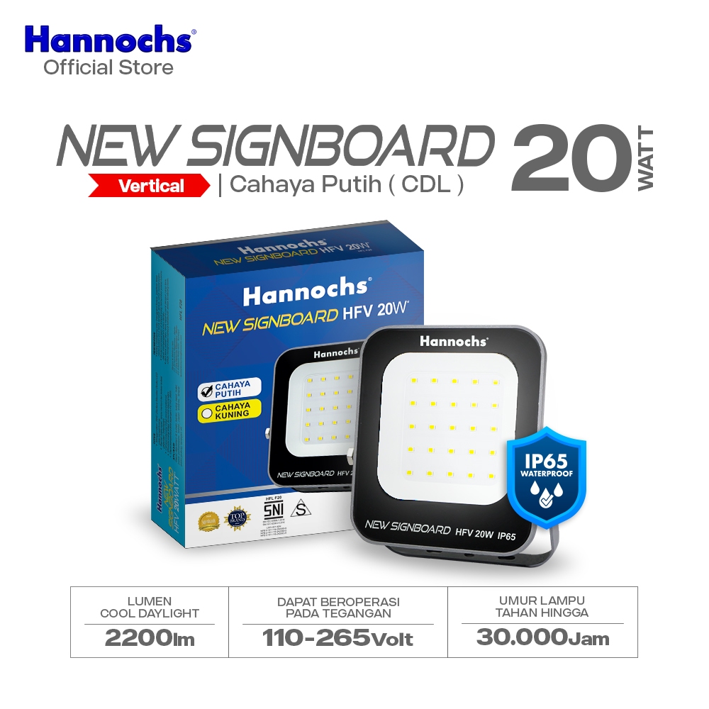 Hannochs Lampu Sorot LED Flood Light New Signboard HFV 20W Cahaya Putih (Model Vertikal)