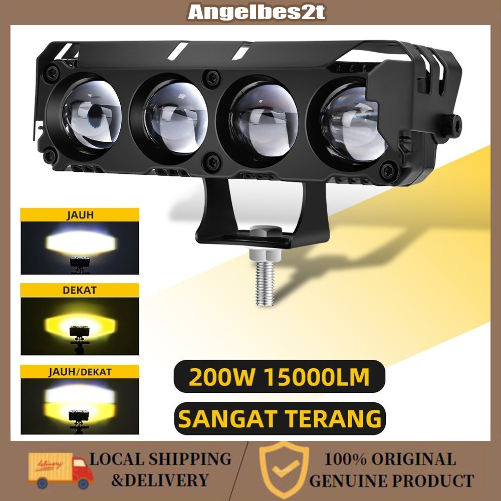 LED High Power 200W IP68 - Lampu Tembak 4 Mata SQL 10000LM, Material Aluminium, Warna Kuning-Putih & Putih-Putih untuk Industri