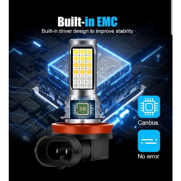 2PCS LED Lampu LED Putih H11 H8 H16(JP) 3 Warna 24SMD untuk Headlight / Fog lamp Mobil Lampu Depan 3030 SMD 12-24V Anti Kabut Untuk Mobil