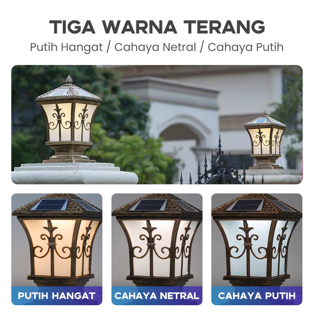 HAN RIVER 10W Lampu Taman Tenaga Matahari 3Warna Outdoor Lampu Pilar Multifungsi Lampu Pagar Tenaga Surya