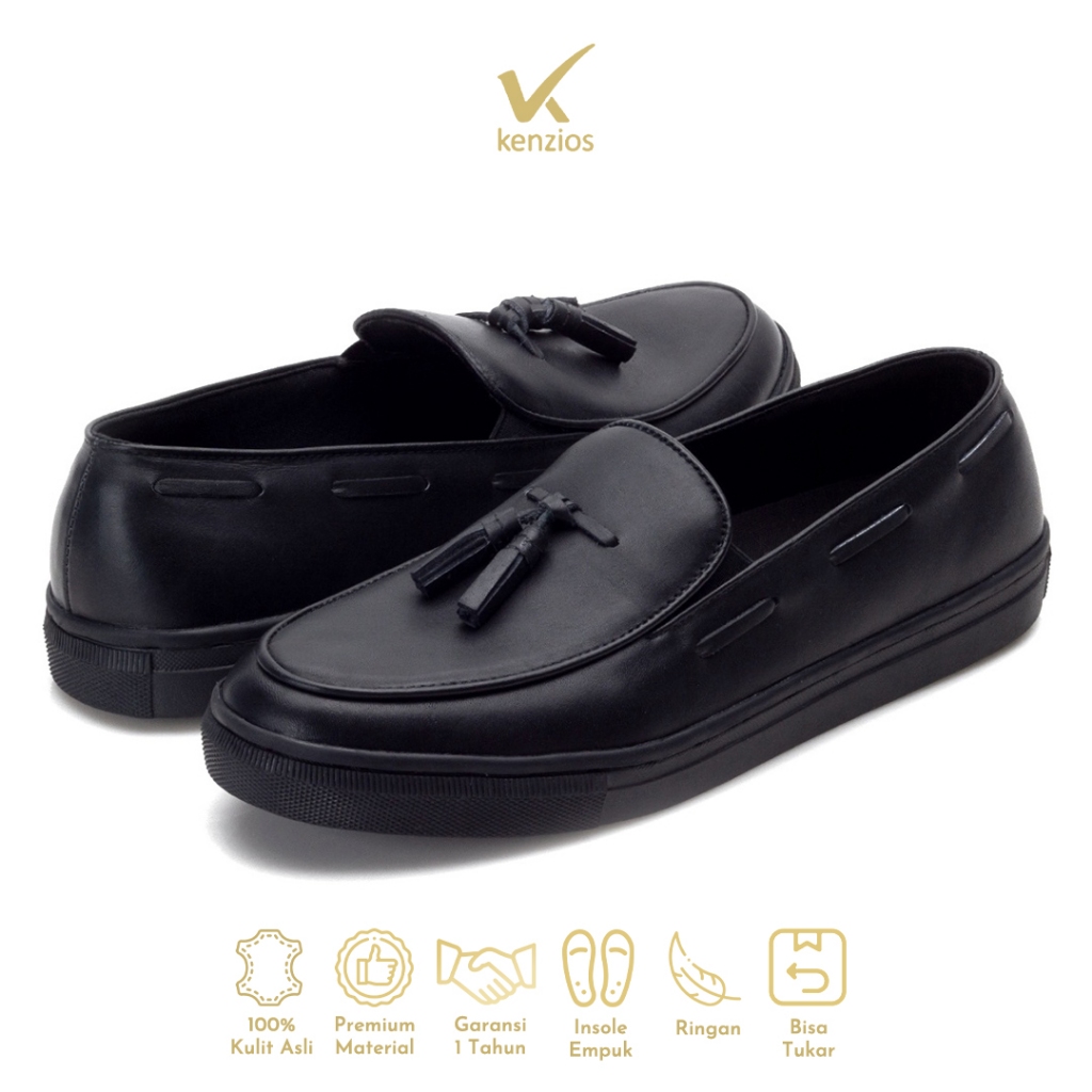 Kenzios Sepatu Formal Pria Kulit Asli BILL 2.0 Full Black Series
