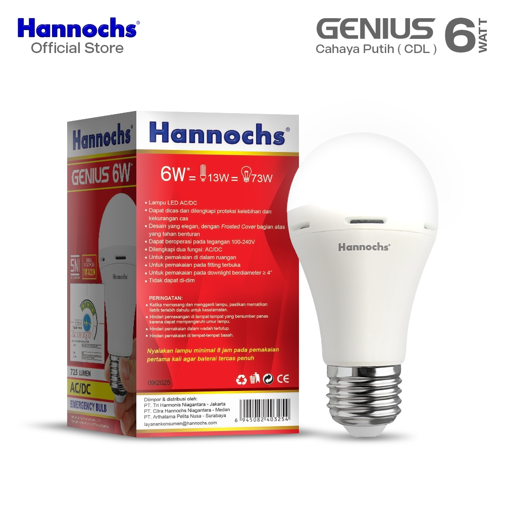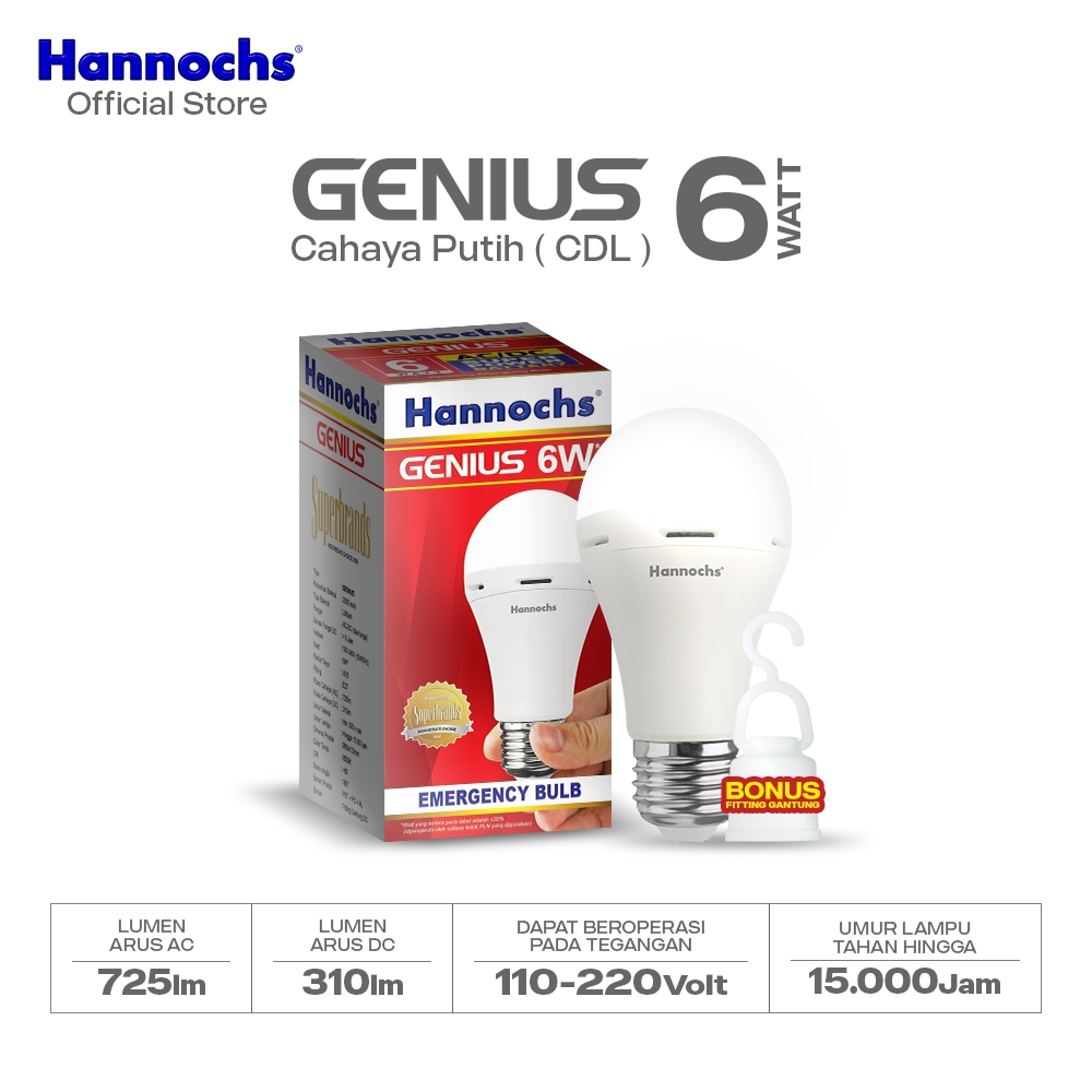 Hannochs Lampu Emergency Bohlam LED GENIUS 6W Cahaya Putih
