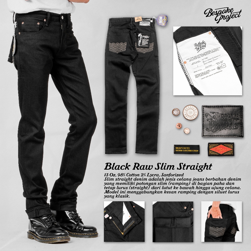CELANA JEANS PRIA BESPOKE PROJECT - CELANA JEANS PRIA HITAM BLACK RAW DENIM CELANA JEANS CELANA DENIM PRIA ORI TERMURAH