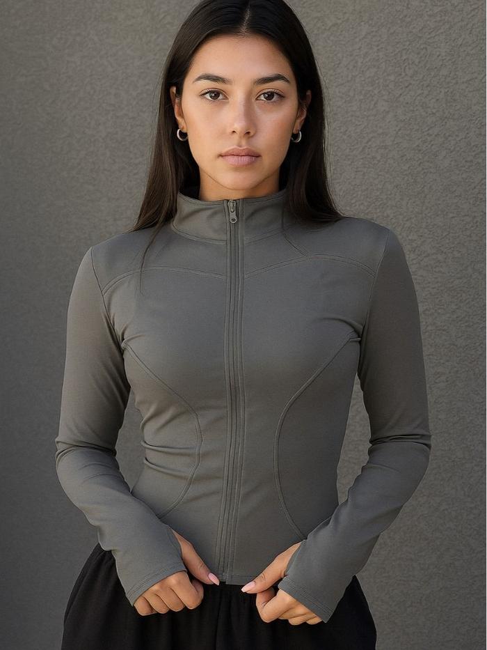 JAKET OLAHRAGA LENGAN PANJANG FIT BODY WANITA - CEWEK YOGA PILATES LARI GYM FITNES PREMIUM QUALITY DKN - BLACK, M
