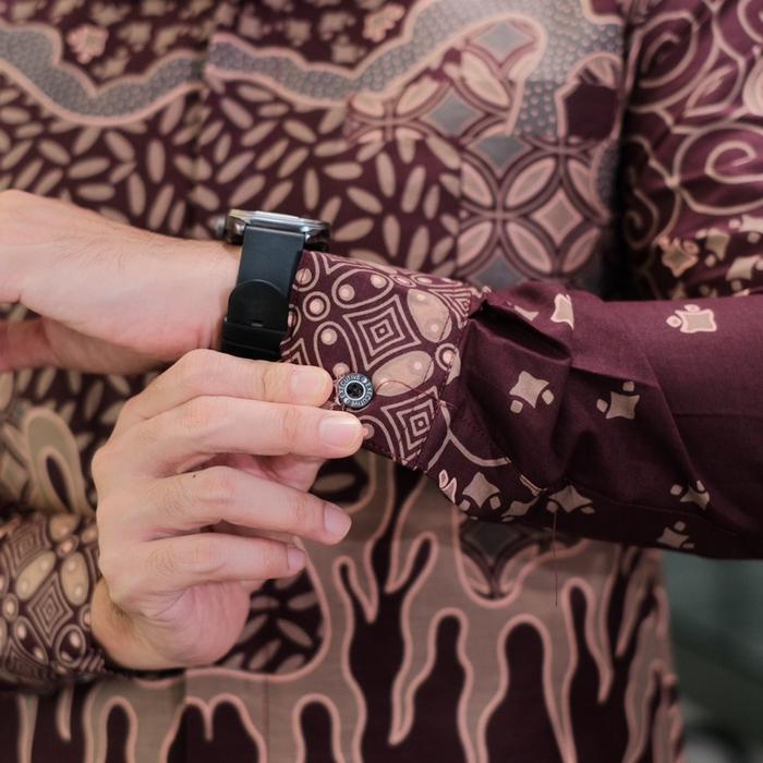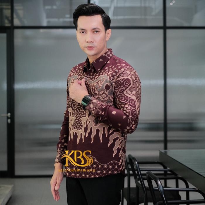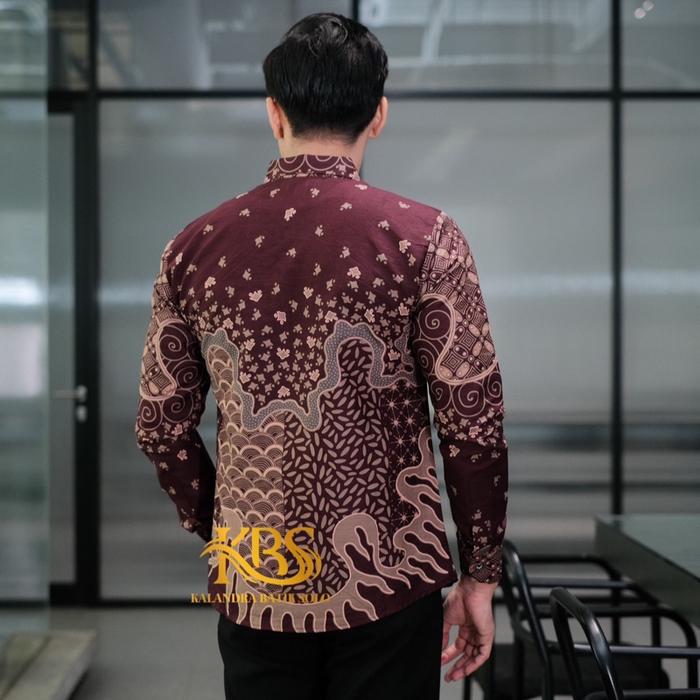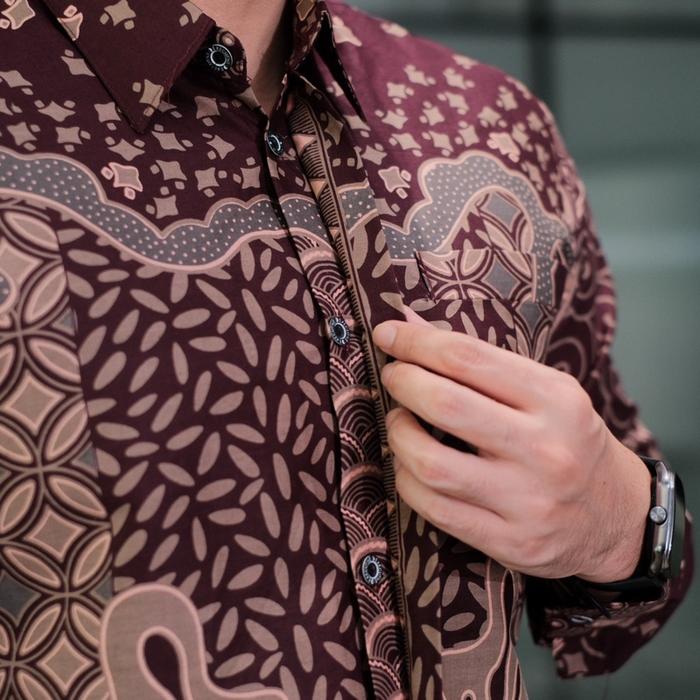 ARGANI BURGUNDY SLIMFIT BAJU PRIA MOTIF KALANDRA BATIK SOLO KATUN PRIMA PREMIUM LENGAN PANJANG PENDEK KERJA FULL FURING CASUAL ADEM - BURGUNDY, M