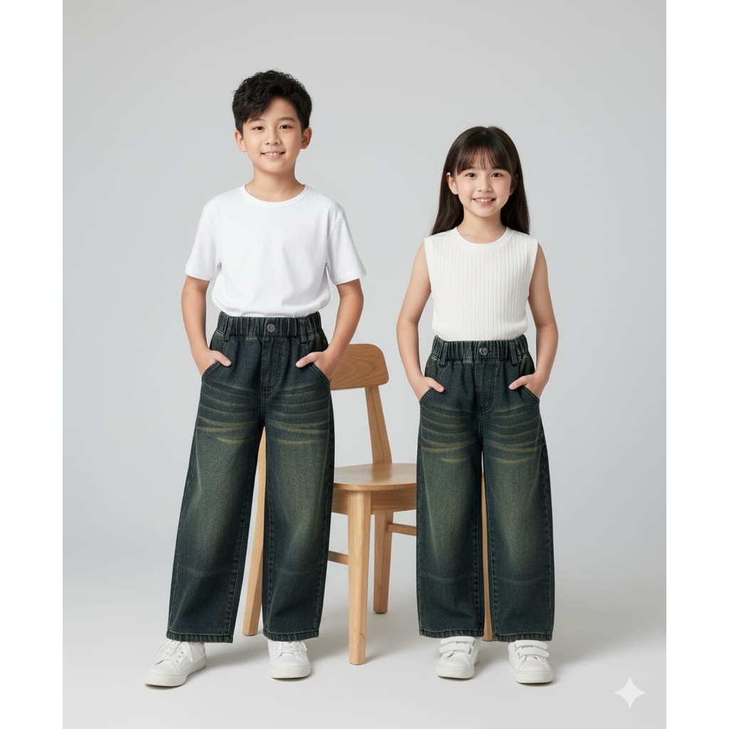 CELANA JEANS SKENA ANAK WISKER LOOSE 3th - 12th LAKI-LAKI DAN PEREMPUAN by SENAYYA.ID