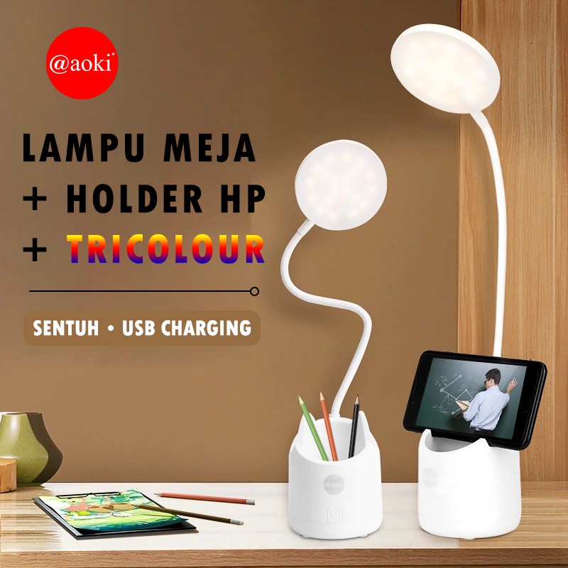AOKI Lampu belajar tricolour sentuh 3warna tempat pulpen Baca Meja Kerja Duduk