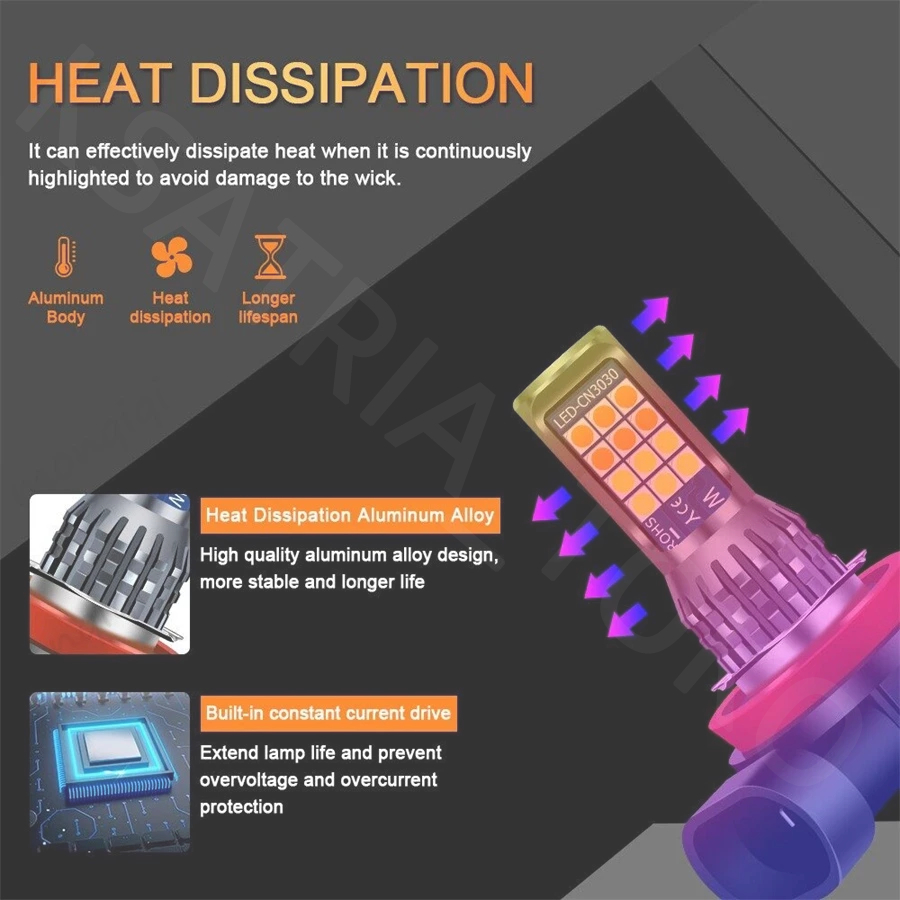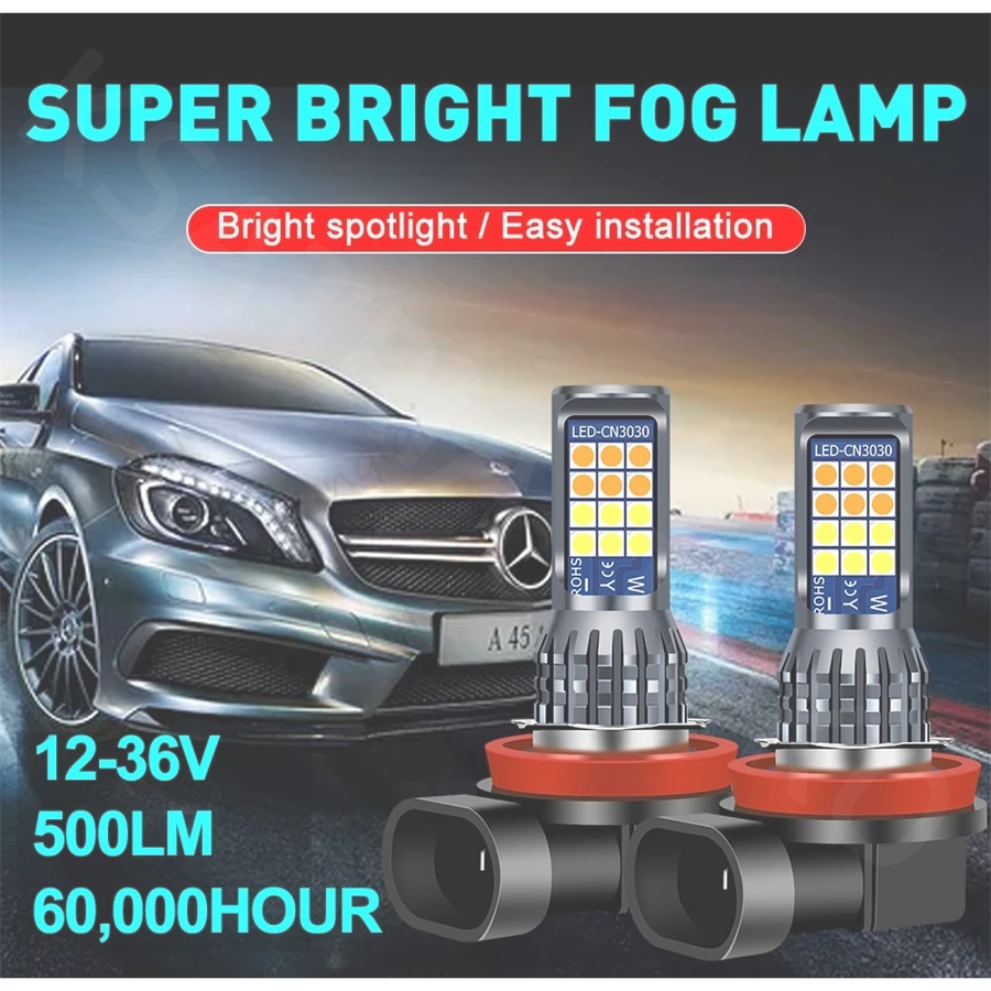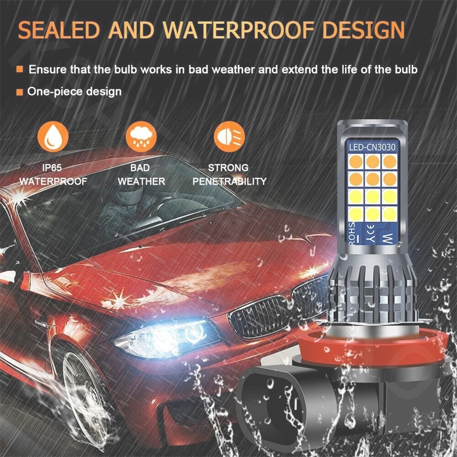 1Pcs 【LED】 Lampu LED Putih H11 Two Color 24SMD untuk Headlight / Fog lamp Mobil Lampu Depan 3030 SMD 12-24V Anti Kabut Untuk Mobil