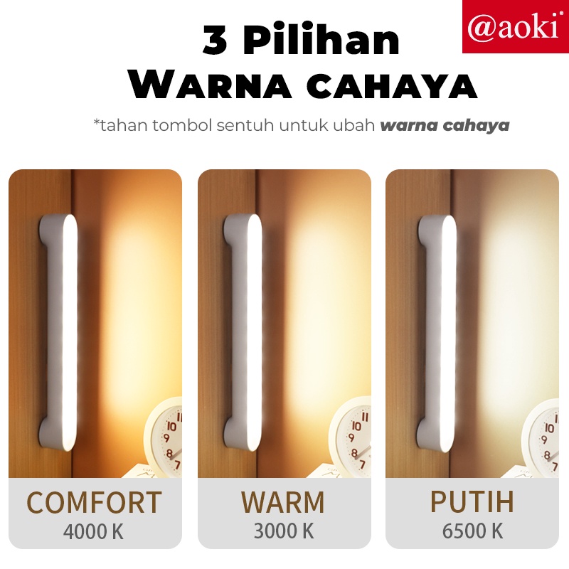 AOKI Lampu LED Magnet Dinding Serbaguna Rechargable USB Warna Aesthetic Led tabung multi warna tahan lama tombol sentuh