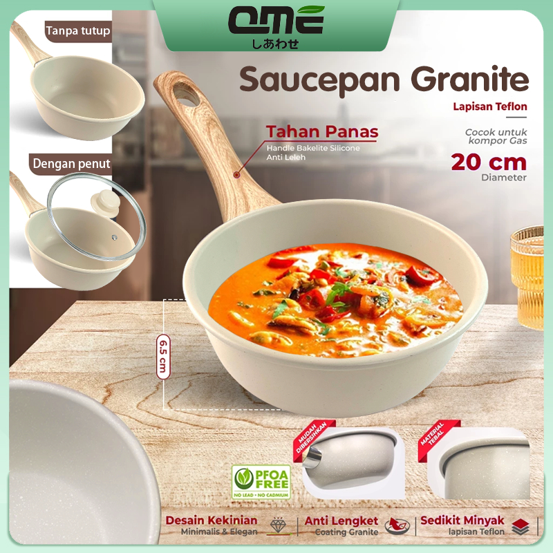 Deep Sauce Pan 20cm Granite Coating Anti Lengket