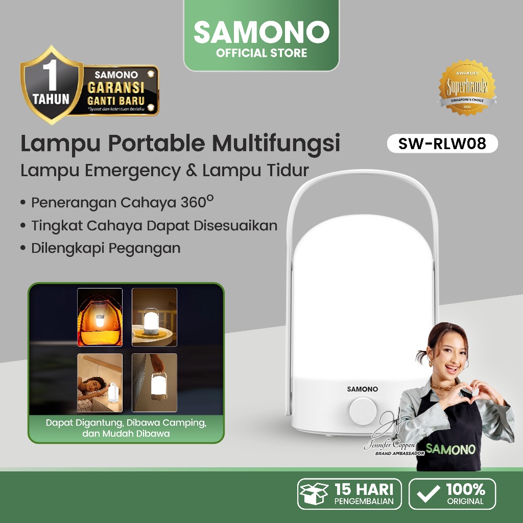 SAMONO Lampu Gantung Portabel Terang 360° Lampu Senter Tahan Hingga 50 Jam Chargeable SW-RLW08 Putih