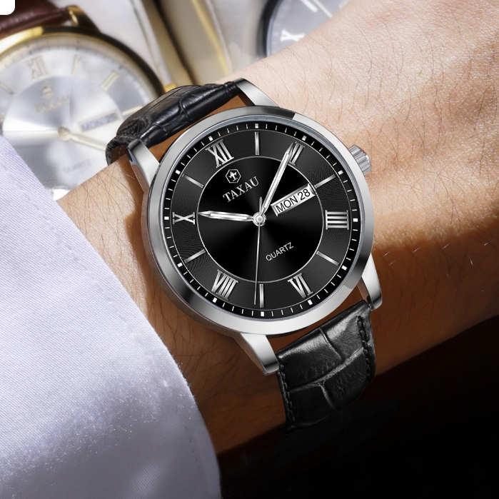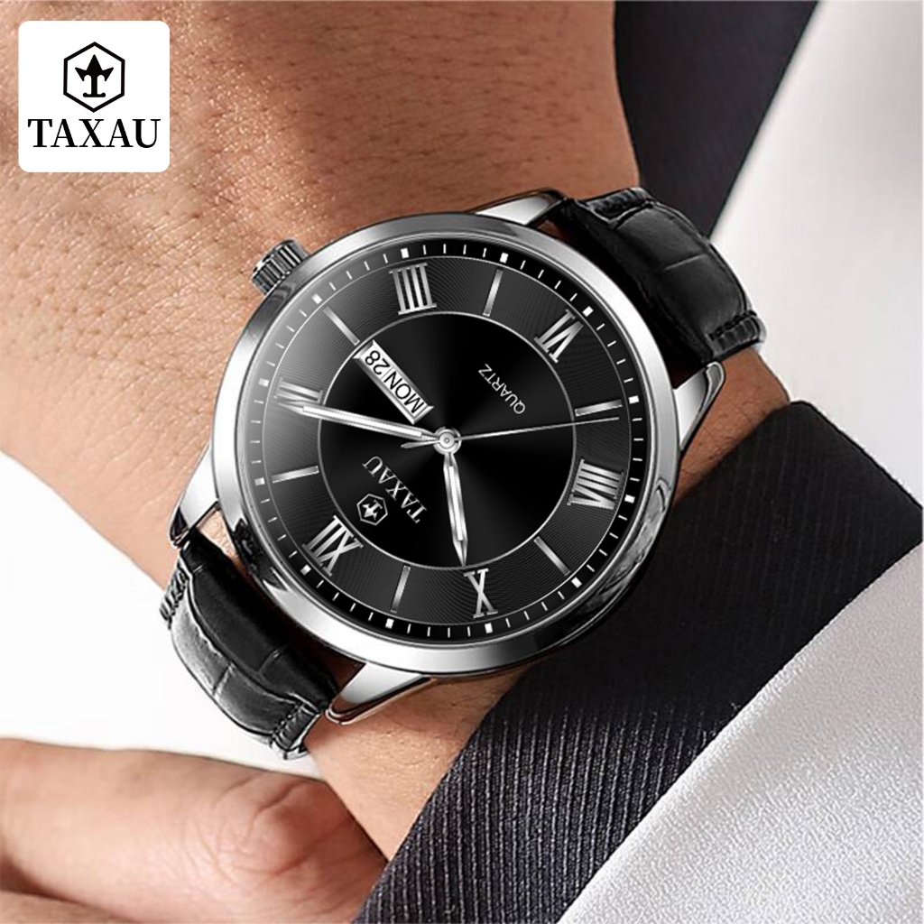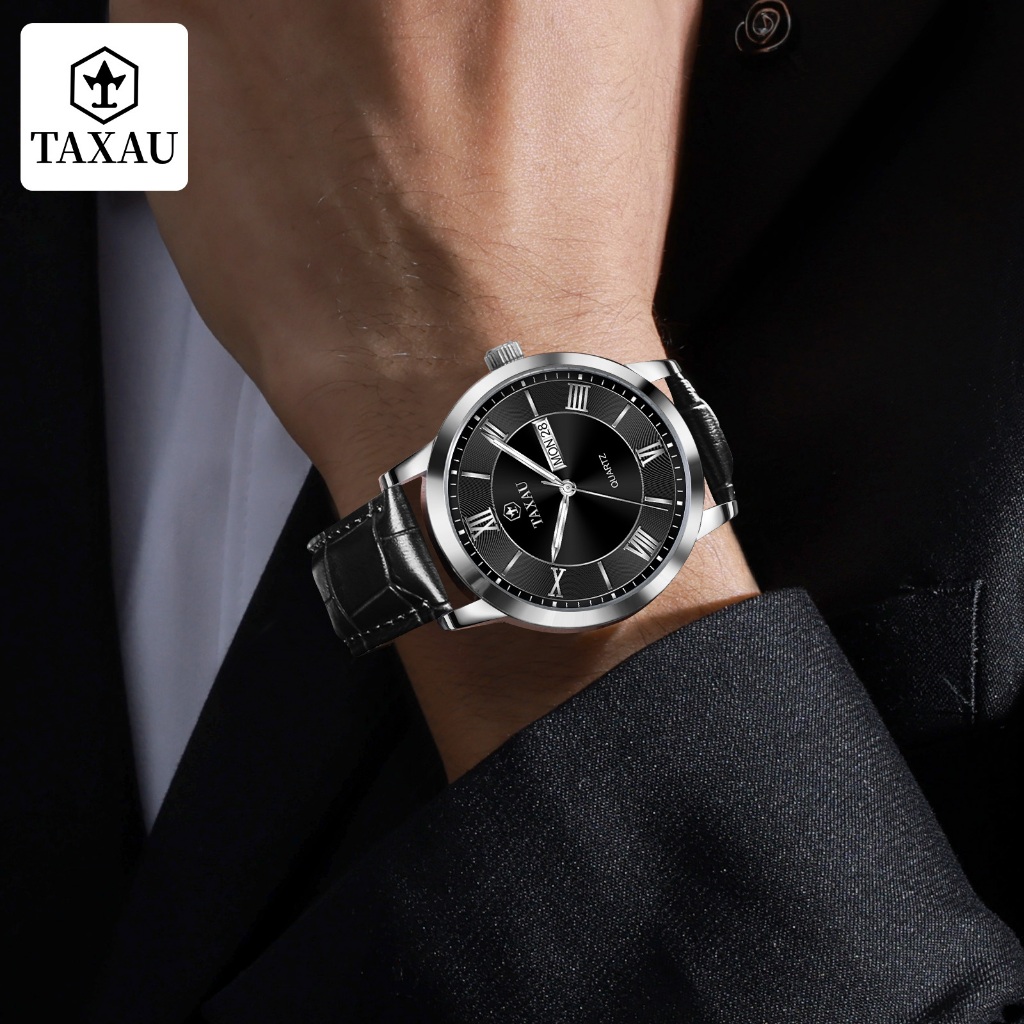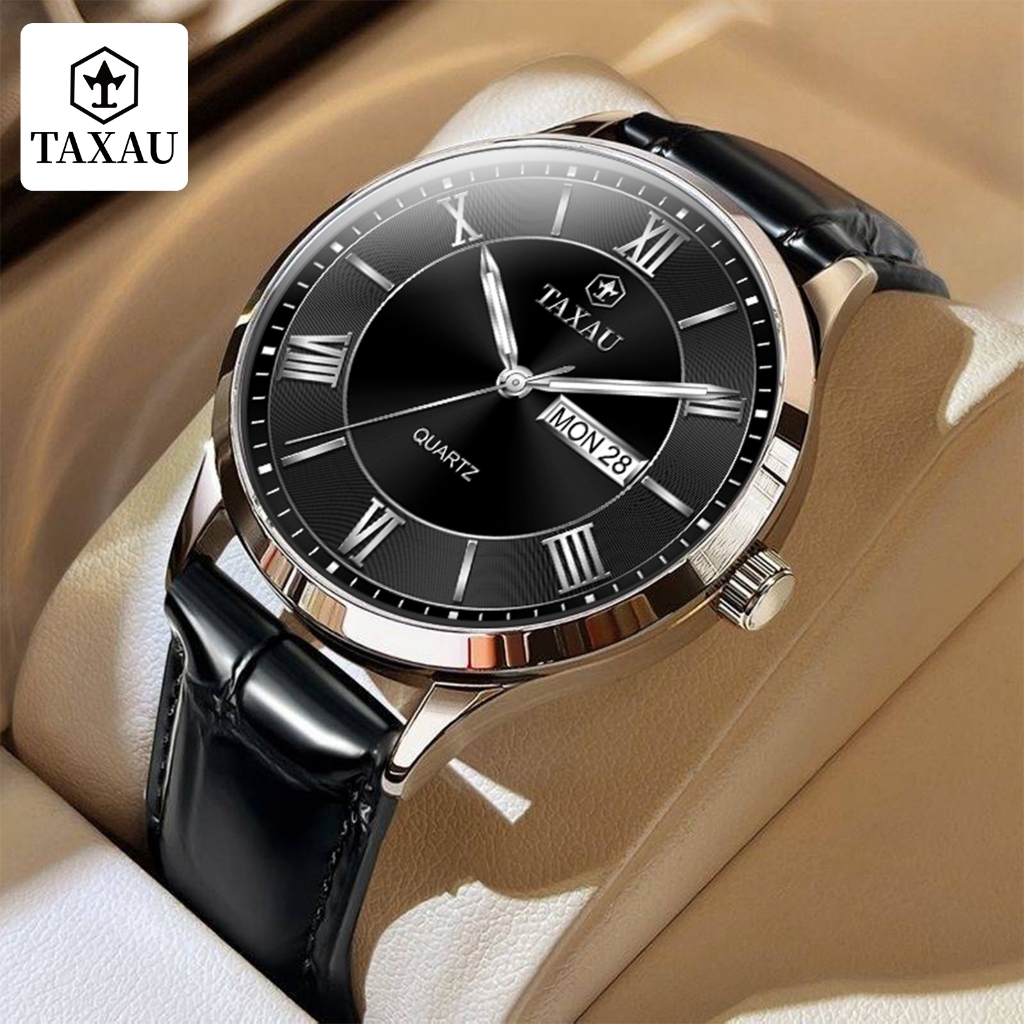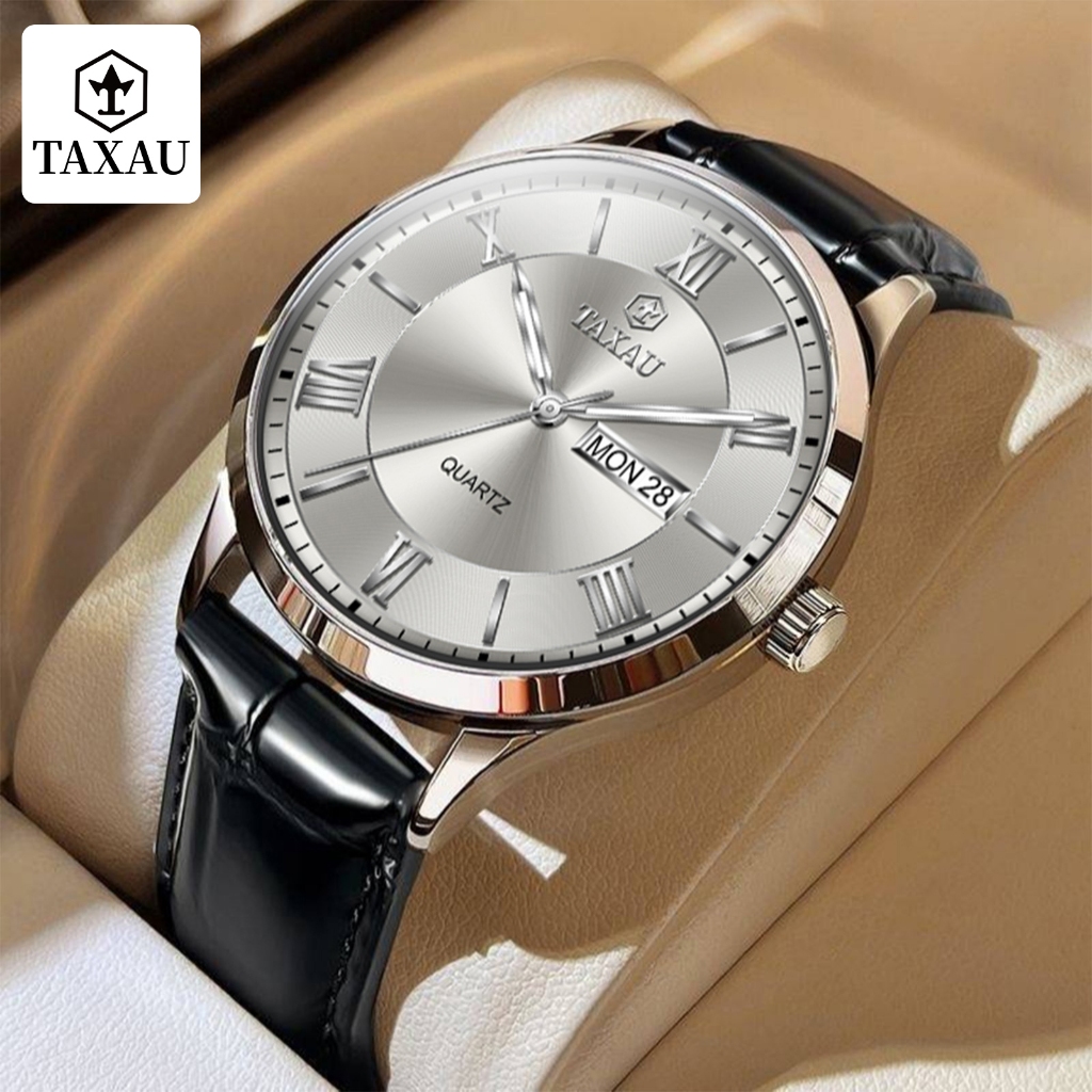 TAXAU Jam Tangan Pria Original Anti Air Kulit Kalender Arloji Analog Bisnis Fashion Men Watches 8408