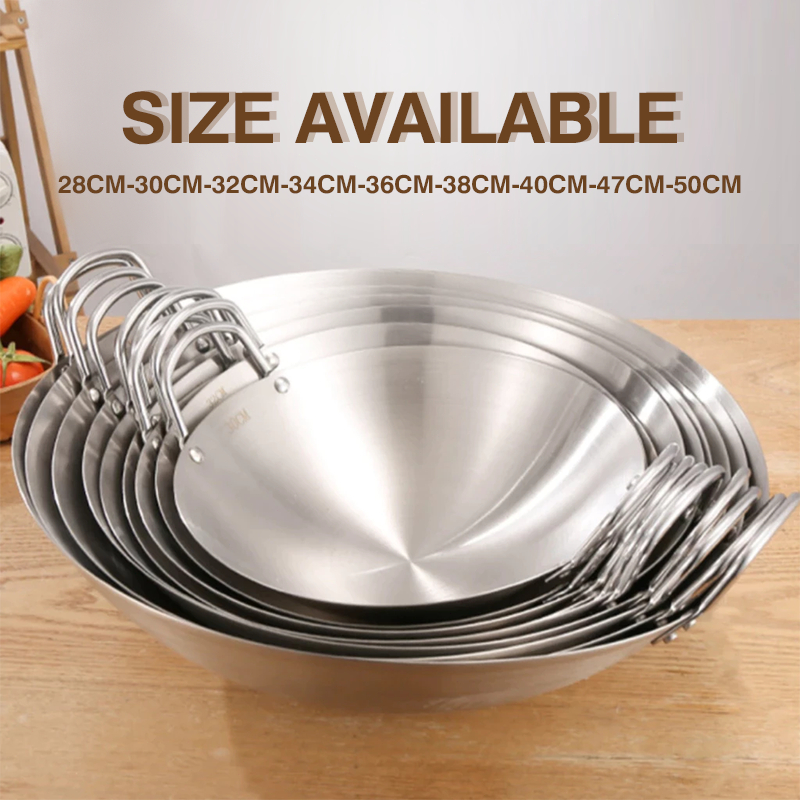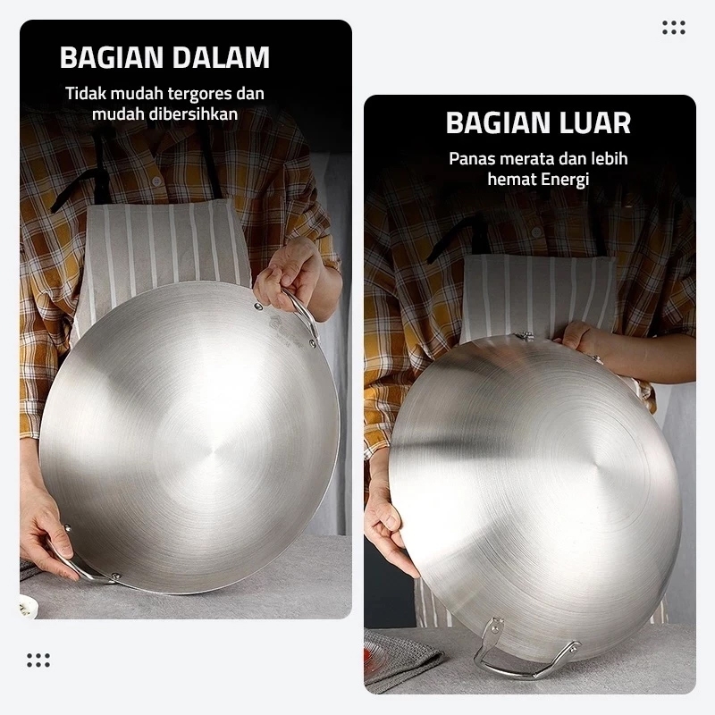 Wajan Stainless 555 Tebal Kuali Premium dengan Pegangan Stainless Steel Kuali Besar Katel Anti Lengket