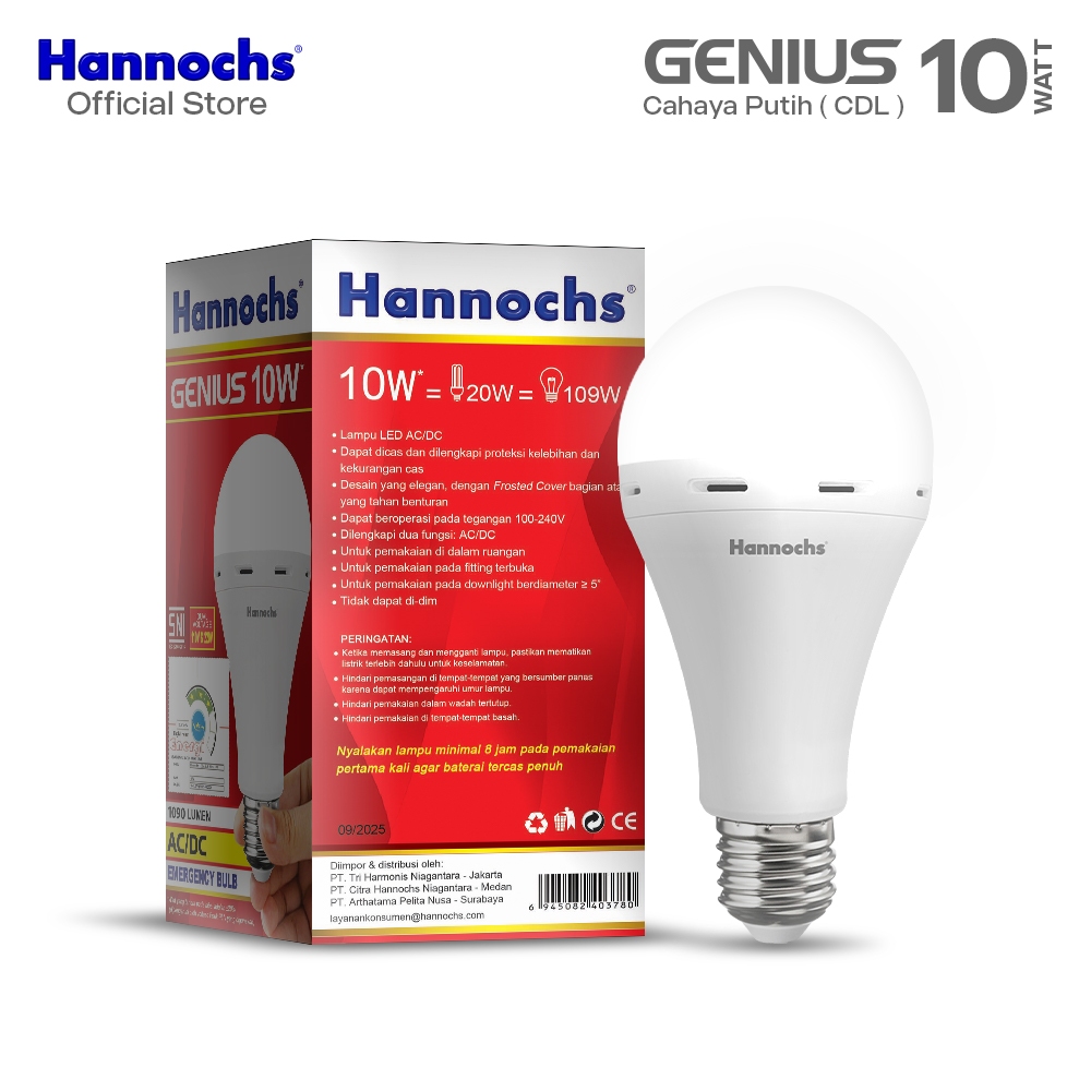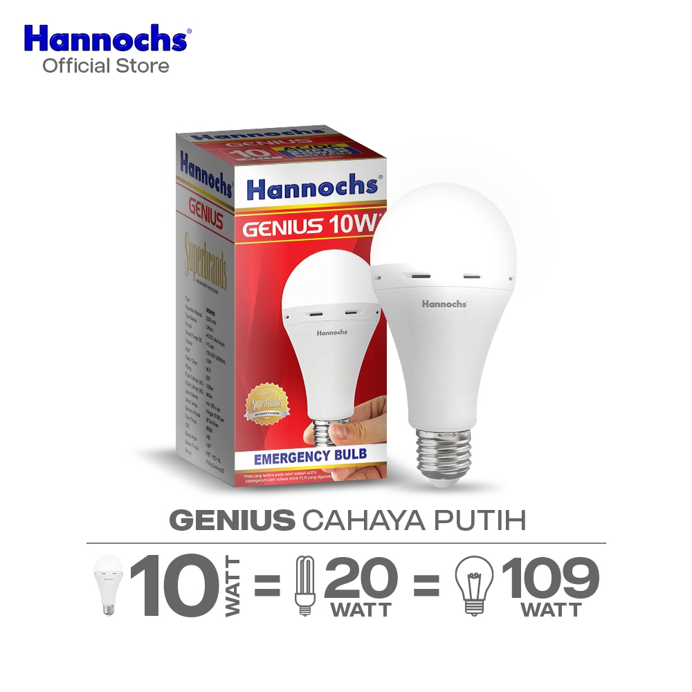 Hannochs Lampu Emergency Bohlam LED GENIUS 10W Cahaya Putih