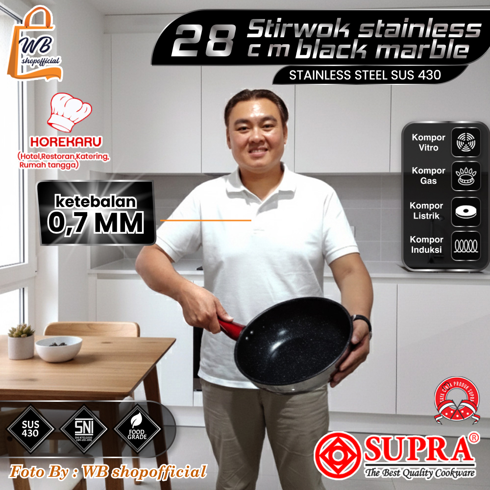 NEW WBOFFICIAL X koko supra Panci Stir wok 28cm stainless steel SUS430 / wajan masak penggorengan tumis goreng rebus