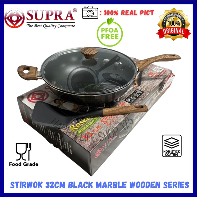 SUPRA Stirwok 32cm +LID Black Marble / Panci Supra 32cm Black Marble