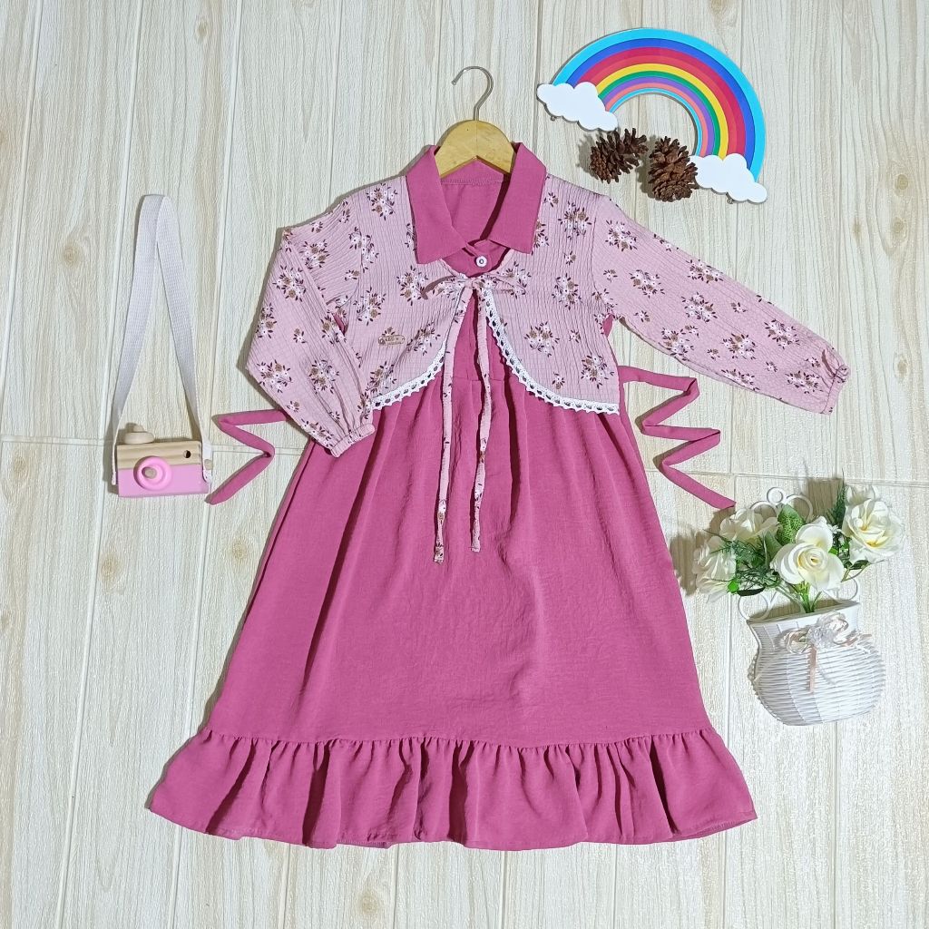 Asyfa Gamis Lucu Anak Perempuan Usia 1-12 Tahun Model Terbaru Dress Crinkle motif