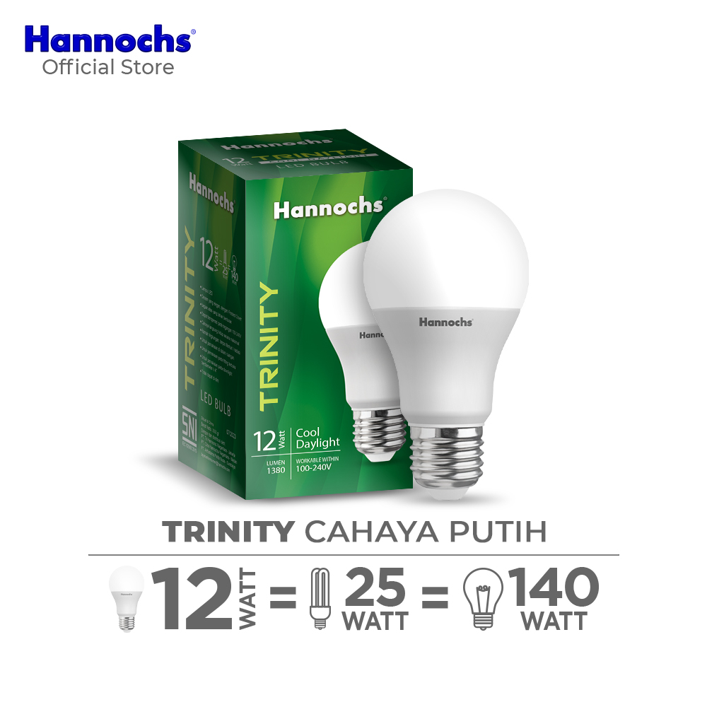 Hannochs Lampu Bohlam LED Trinity 12W isi 4pcs Multipack Cahaya Putih
