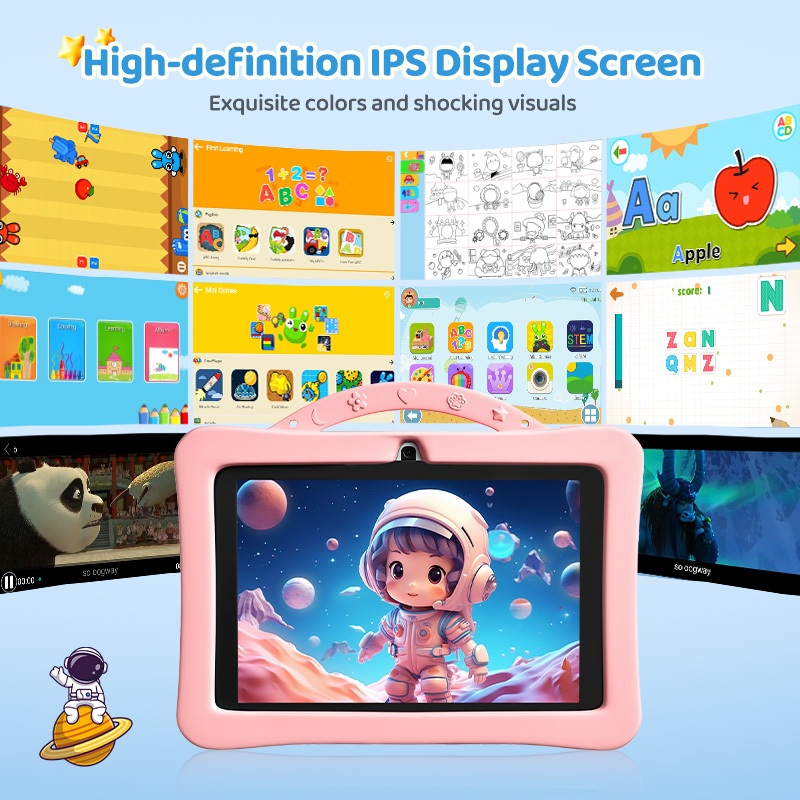 Tablet Anak Untuk Belajar Android 702 4GB+128GB 7 Inch Kontrol Orang Tua Wawa Kamera Ganda Kids Study Tablet Kiumo
