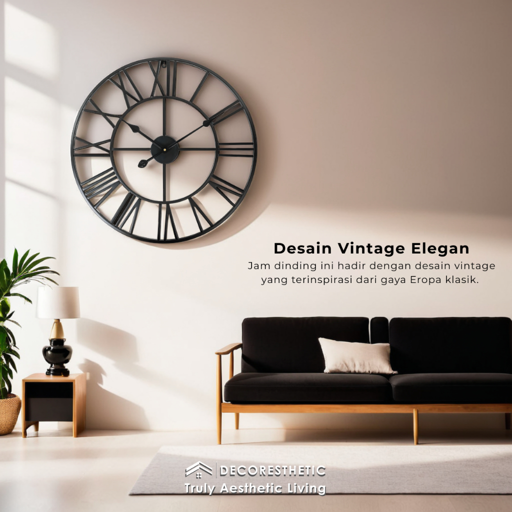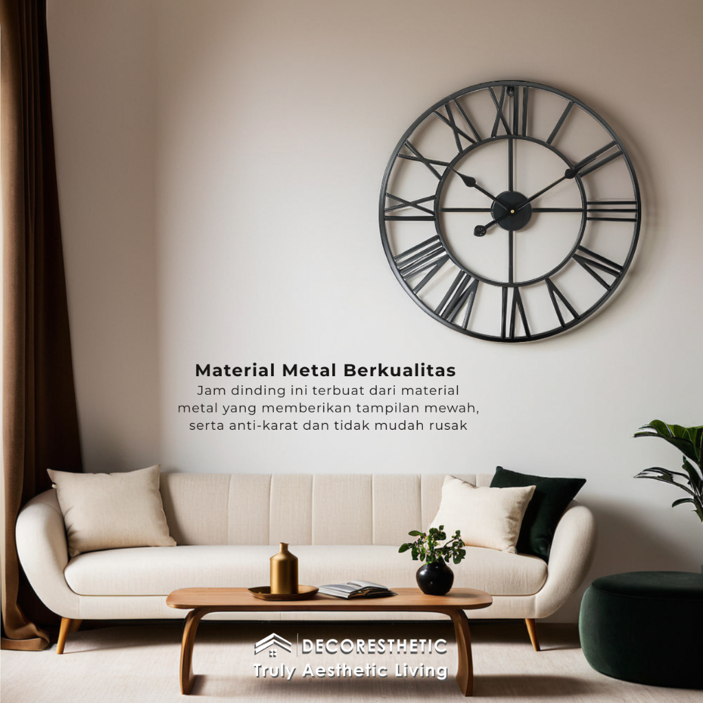 Decoresthetic Jam Dinding Analog Besar Jumbo Modern Minimalis Jam Hias Dekorasi Dinding Romawi