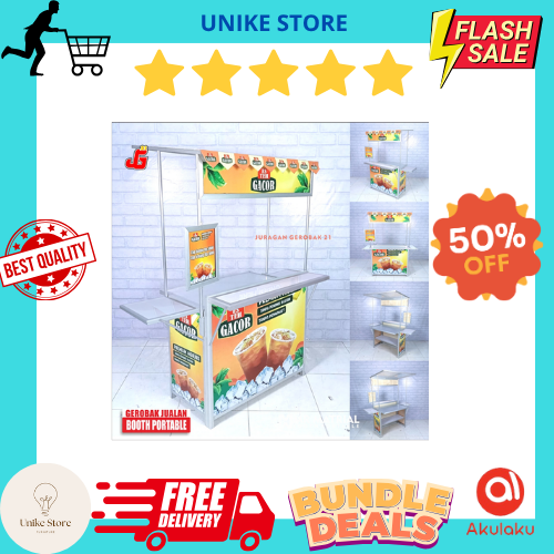 [Star] Booth portable Meja Lipat Jualan Full Meja Tambahan Plus Atap Booth Es teh Gerobak Jualan Almunium Termurah