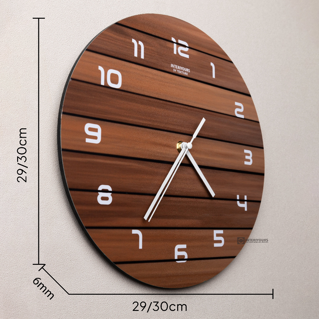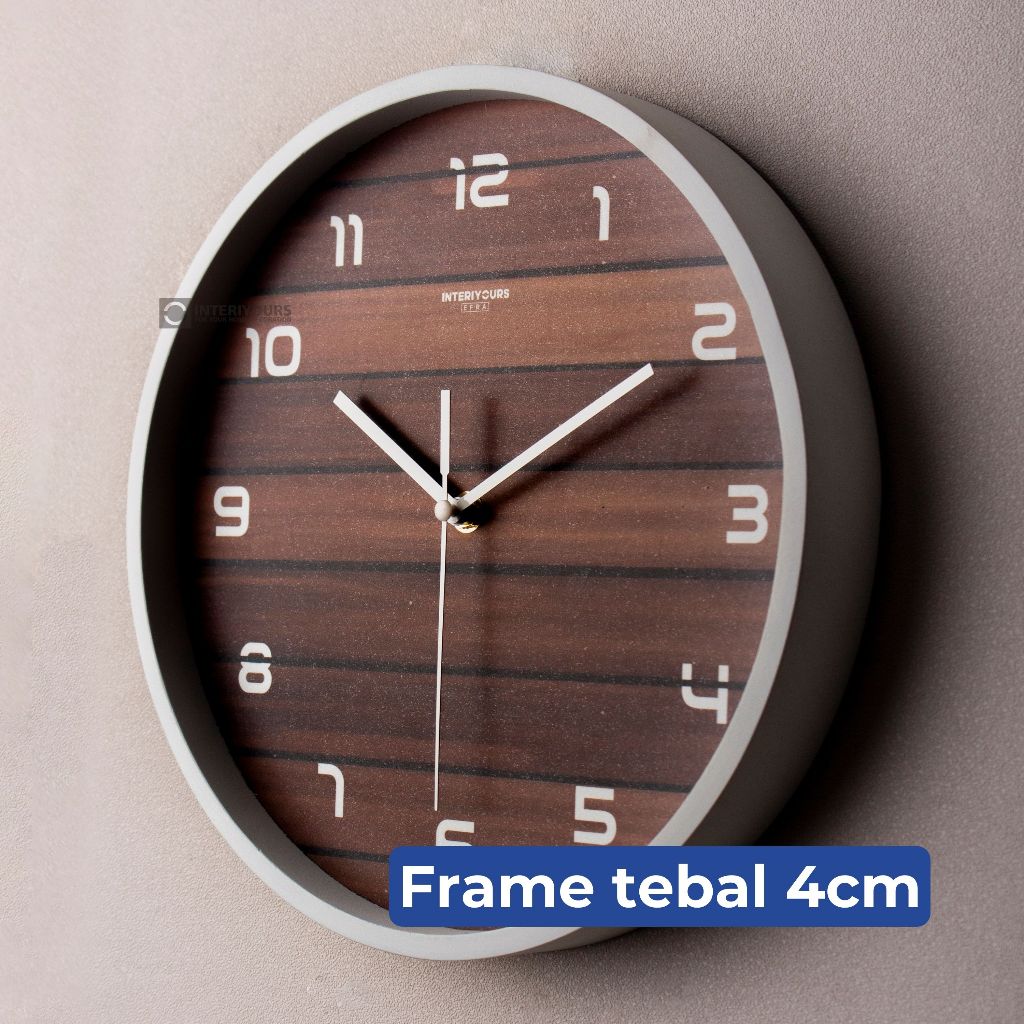 Jam Dinding Estetik Bulat 29cm Tekstur Kayu Semen Mesin Silent Movement Tanpa Suara