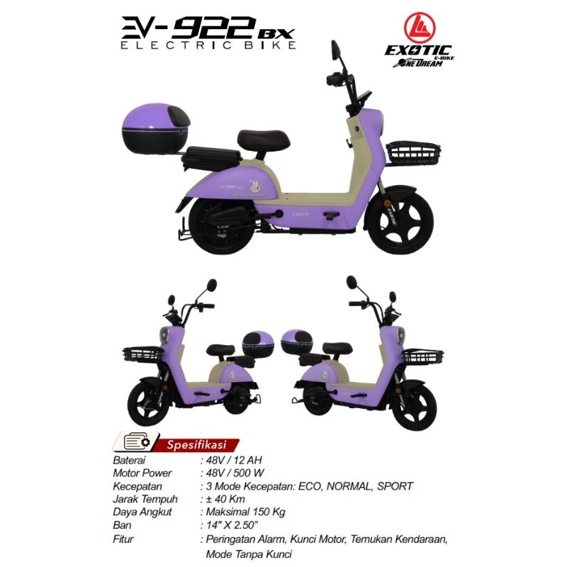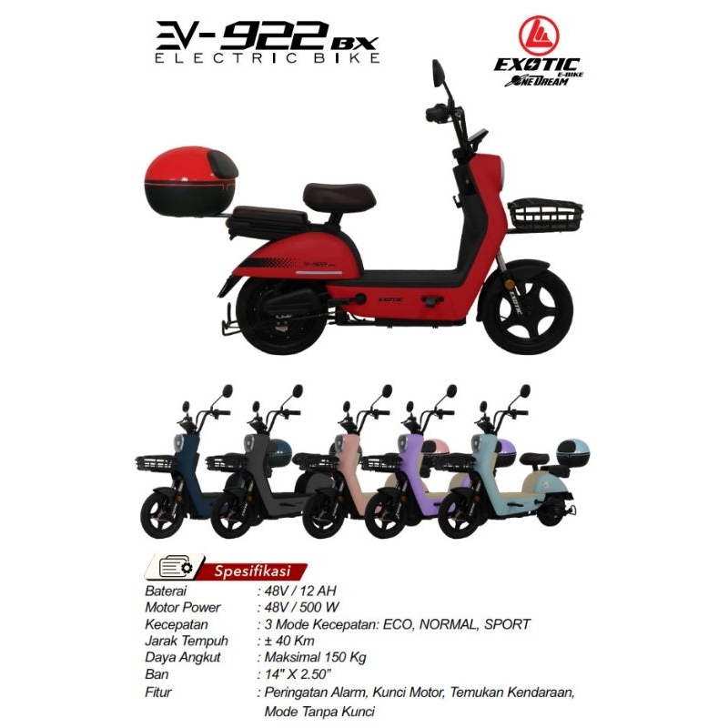 Sepeda Listrik Exotic EV 922 BX Terbaru Termurah Original Bergaransi Resmi