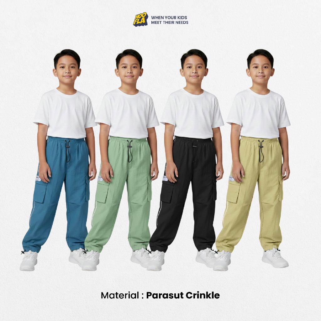 Celana Crinkle Long Cargo Arka Basic Pocket Loose Fit Anak Perempuan dan Laki Laki Usia 2-12 Tahun