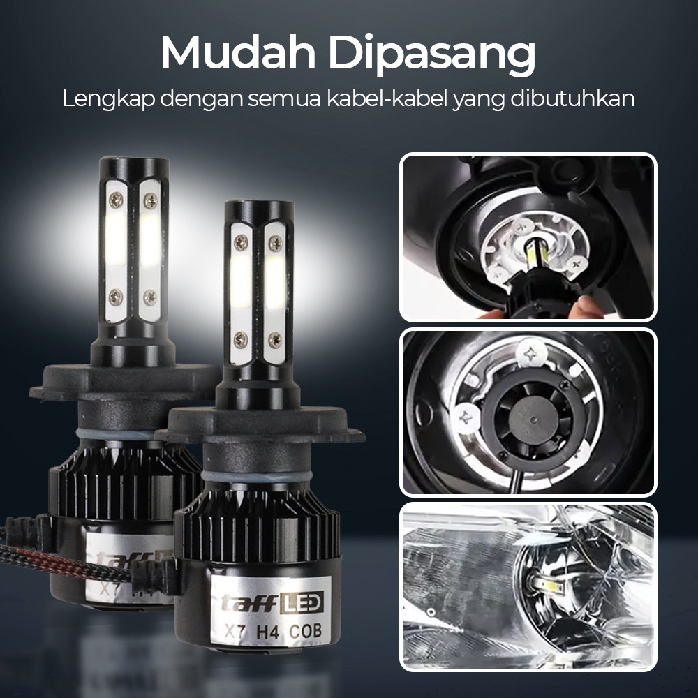 Lampu Depan Mobil LED COB Headlight H4 X7 4 Sisi 48Watt Sepasang 2Pcs