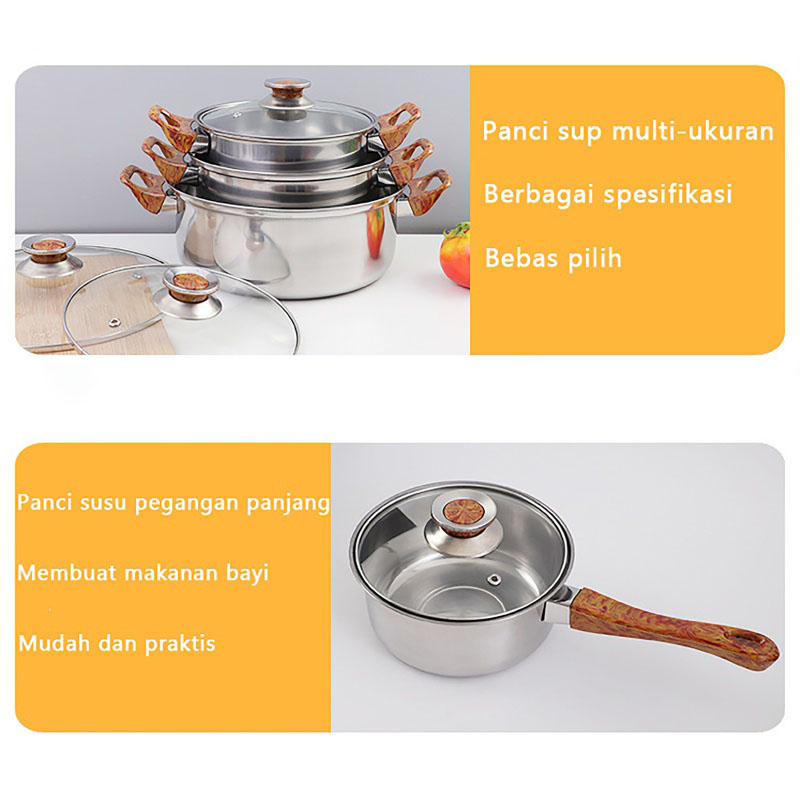 QME Panci Set Stainless Steel Dengan 6 Pcs Dengan Teko Stainless Panci Serbaguna Isi