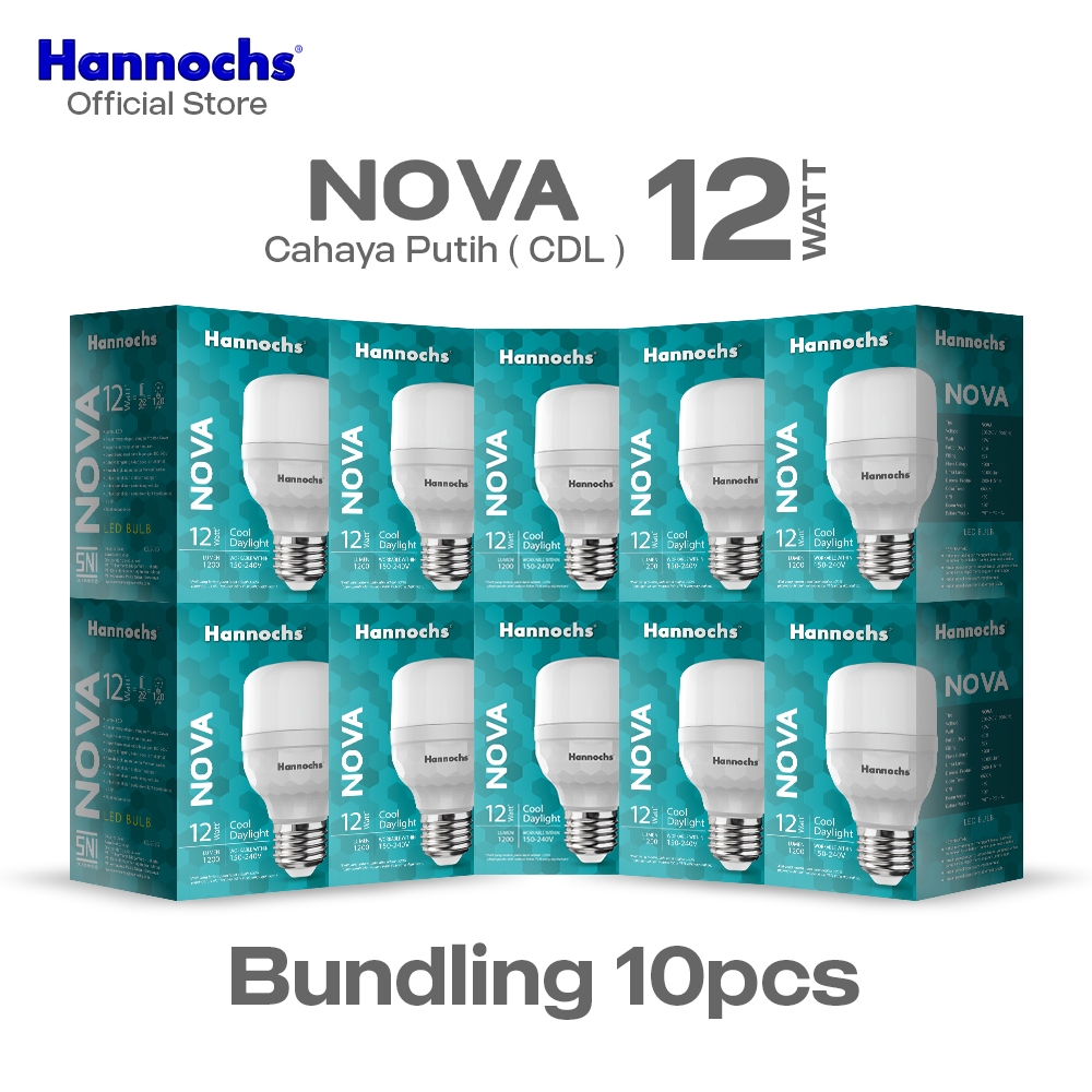 Hannochs Lampu Bohlam LED NOVA 12W Cahaya Putih Paket isi 10pcs