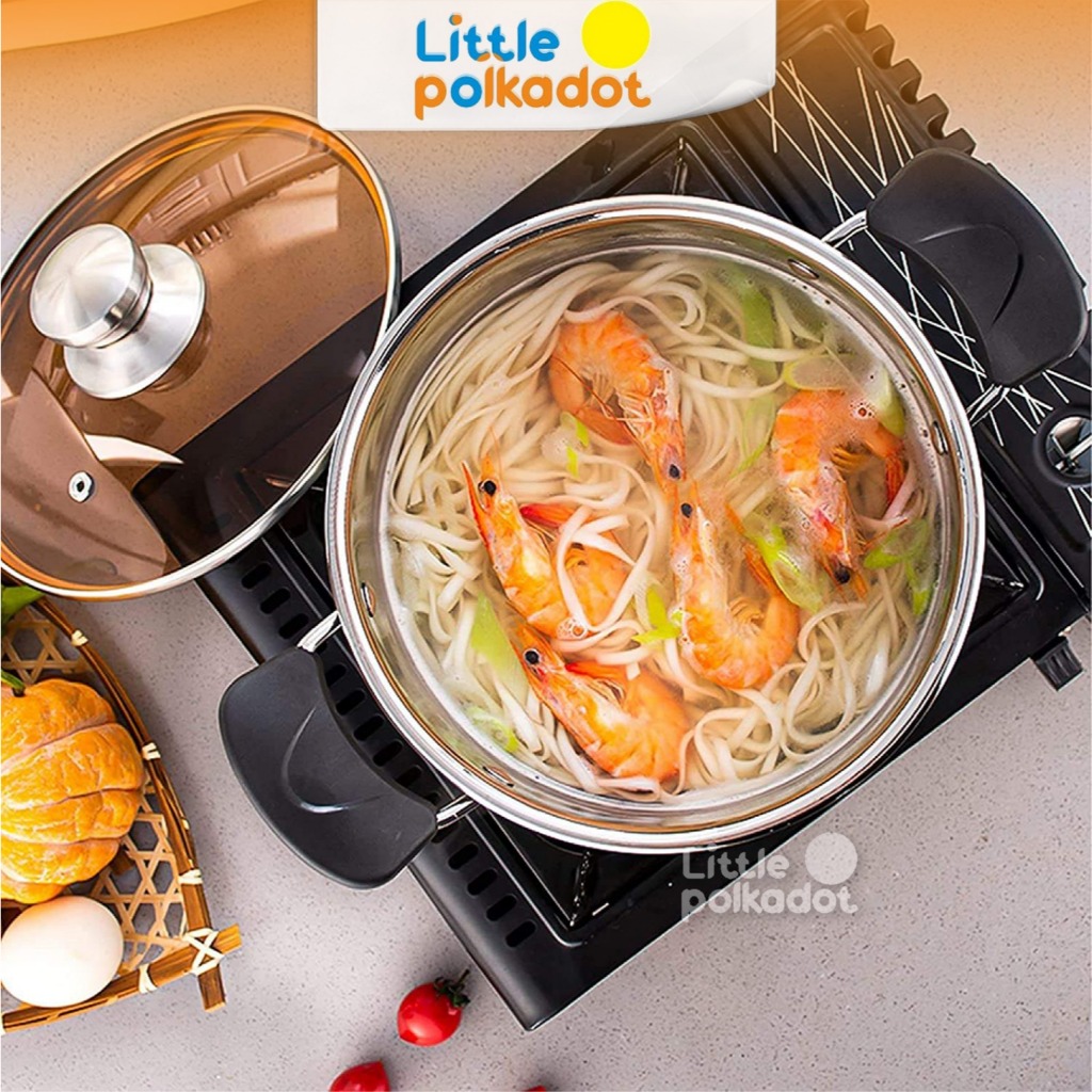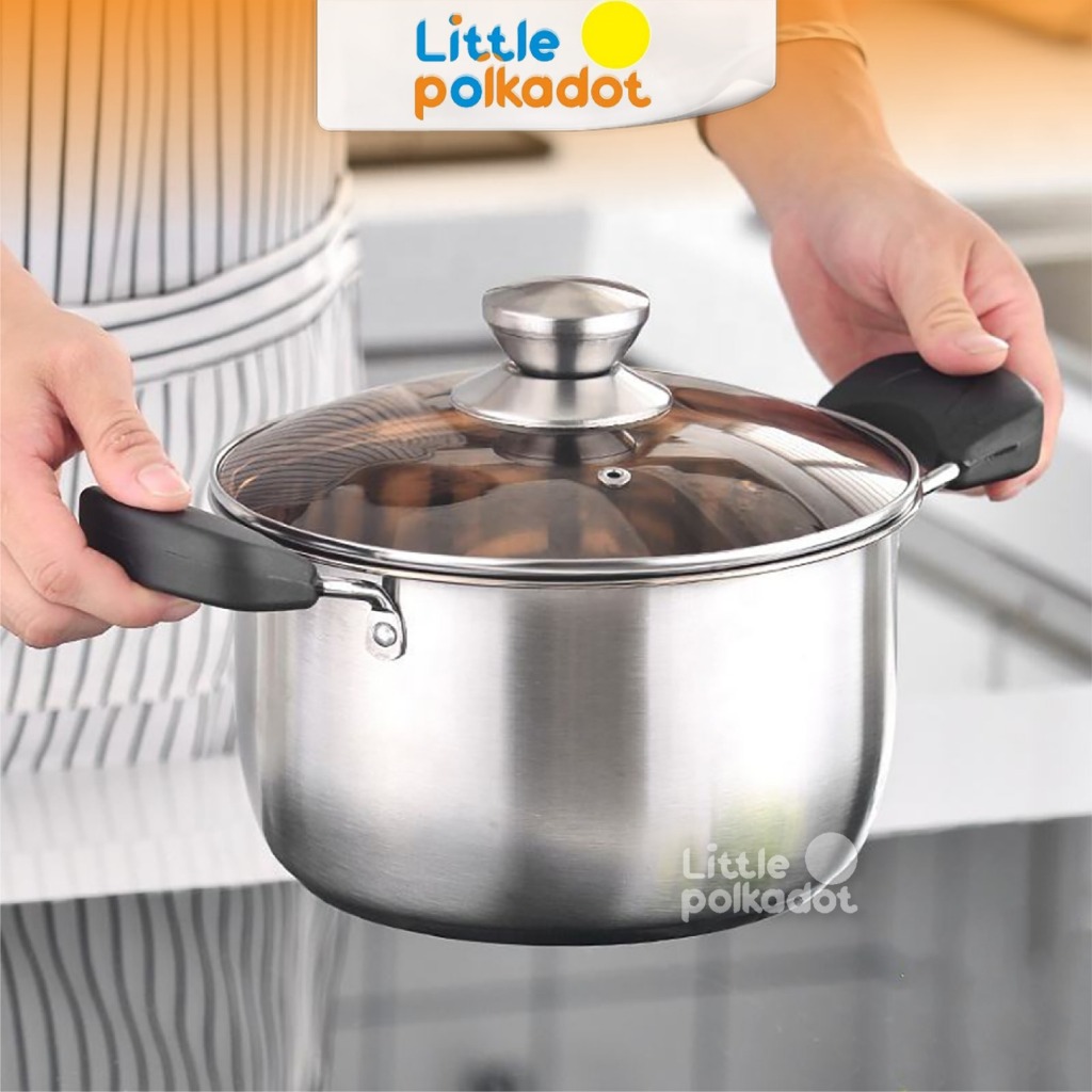 Littlepolkadot 22cm 24cm 26cm Panci Anti Lengket Panci Susu Tutup Kaca Panci Susu Stainless Steel Panci Besar Panci kecil Milk Pot Milk Pan Panci