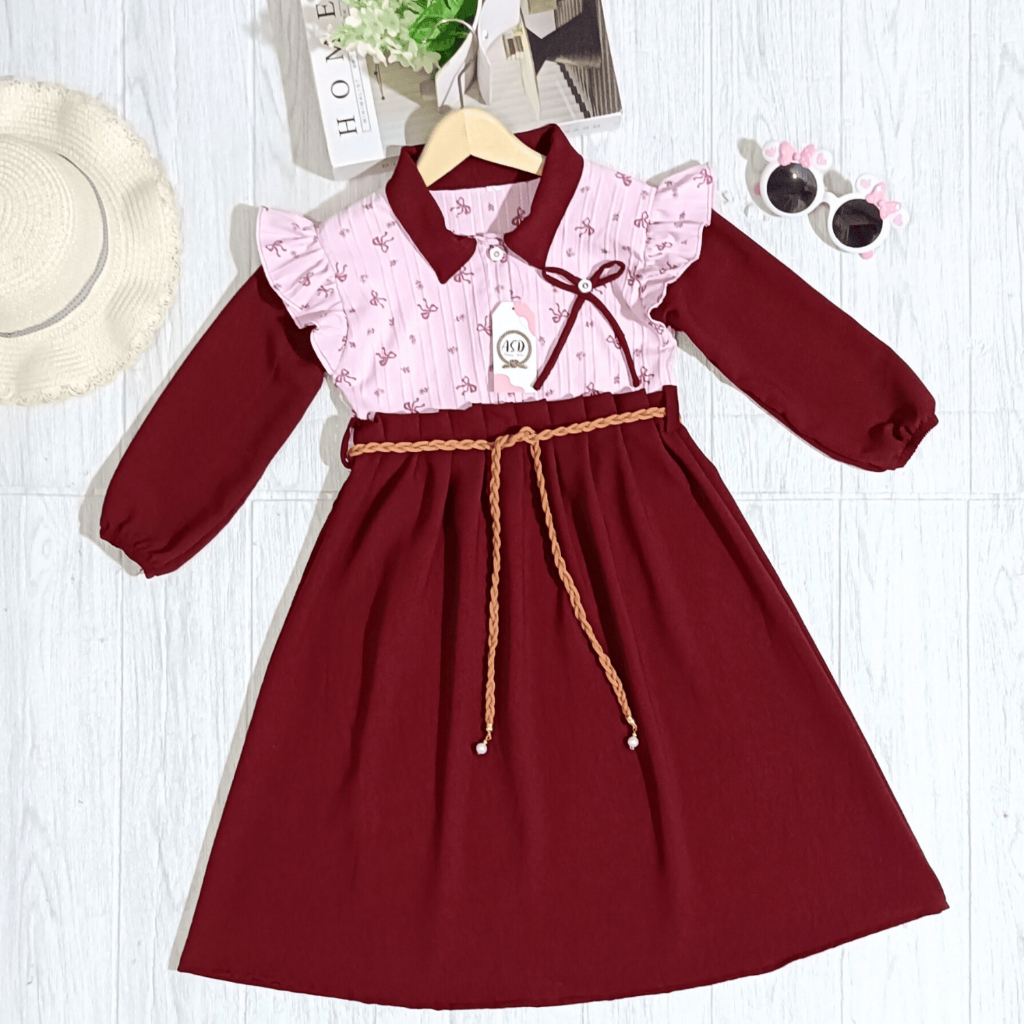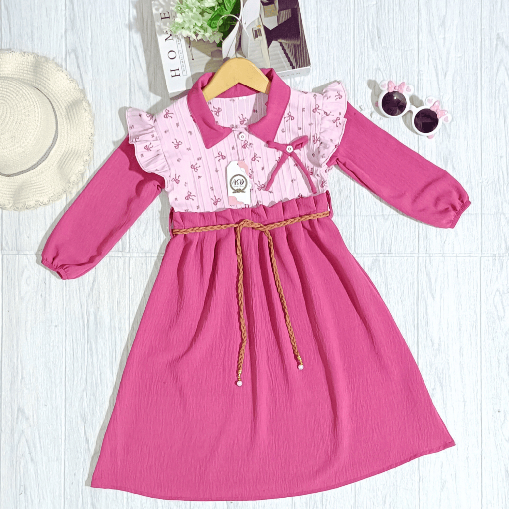 Baju Gamis Aretha Anak Perempuan Usia 1-9 Tahun Crinkle Muslim Free Belt Cantik