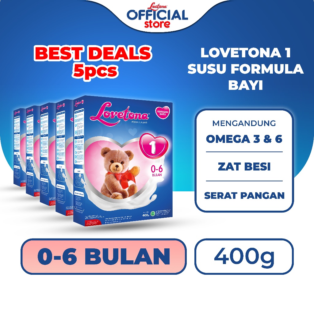 Paket Lovetona 1 Susu Formula Bayi 0 - 6 Bulan 400 Gr X 5 Box