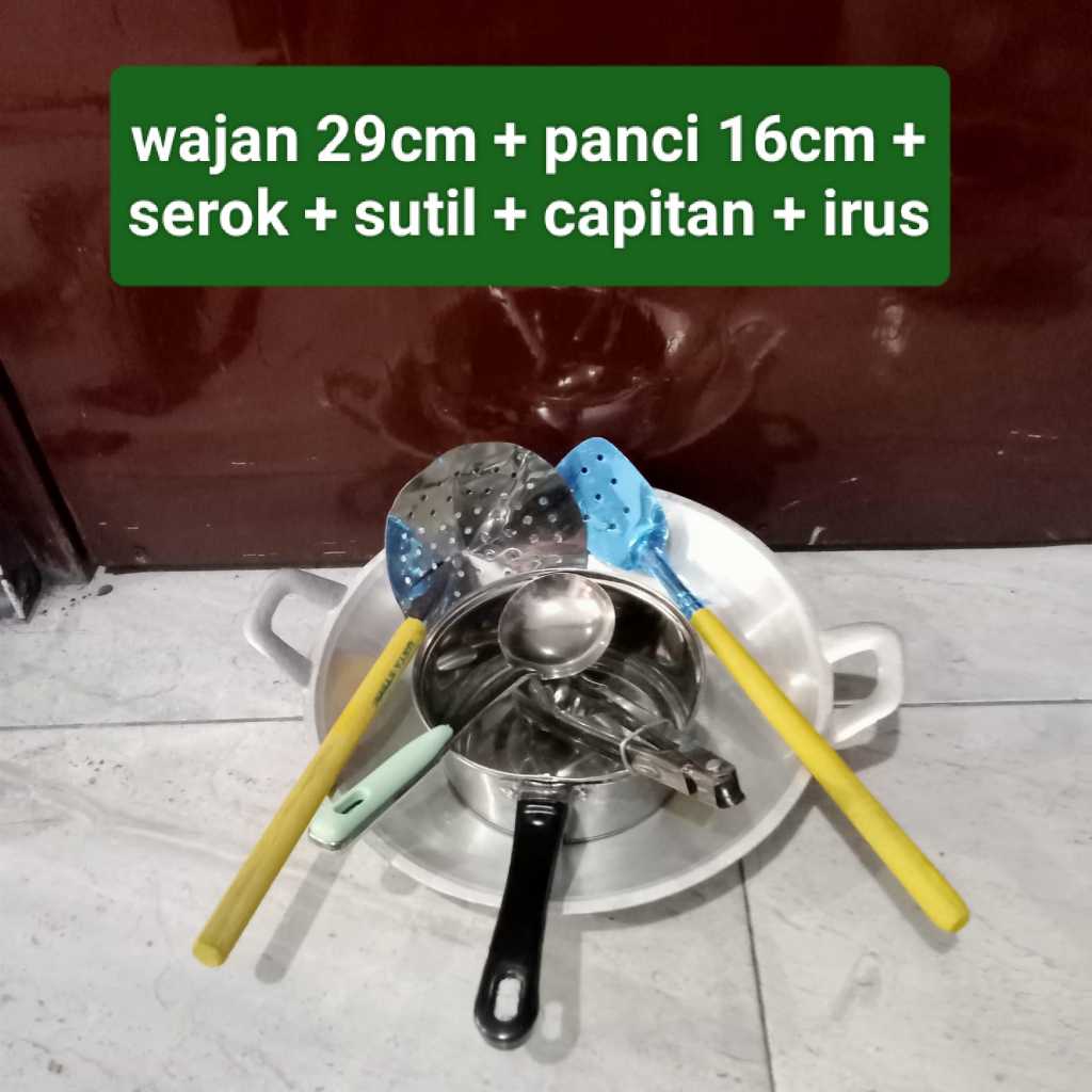 [PAKET HEMAT] WAJAN 29CM + PANCI 16CM + SUTIL + SEROK + CAPITAN + IRUS