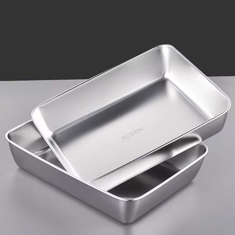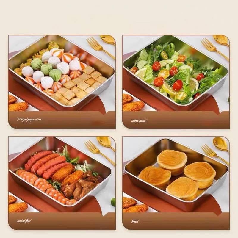 nampan/food box/Wadah Kotak Makanan Sayur Baja Tahan Karat dengan Tutup/Rak Kotak Wadah Makanan Cocok untuk Oven/Piring Persegi Tebal