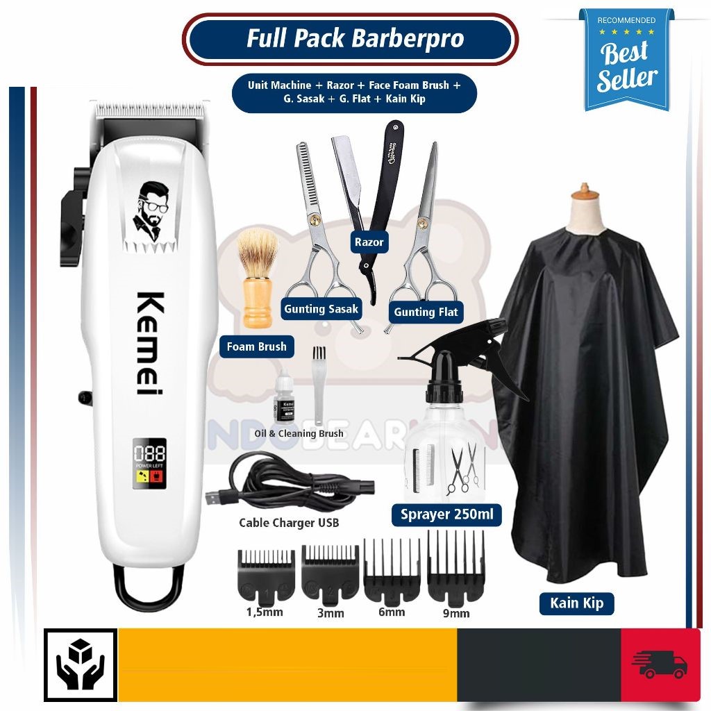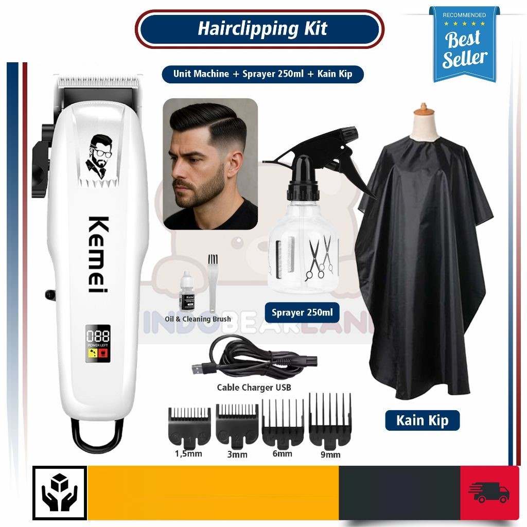 Alat Cukur KEMEI Mesin Cukur Rambut Elektrik Profesional Baterai Cas Paket Lengkap rambut jenggot kumis elektrik wahl