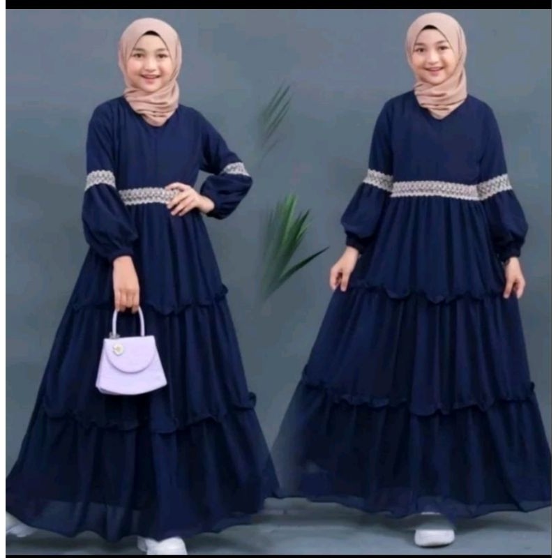 Baju Gamis Anak Putih Perempuan Usia 4-13 Tahun Variasi Renda Bahan Crinkle Airflow Terbaru Kekinian
