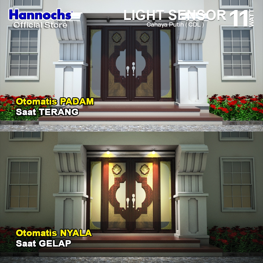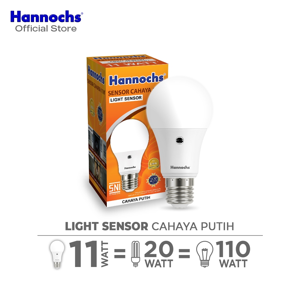 Hannochs Lampu Bohlam LED Light Sensor 11W Cahaya Putih isi 3pcs